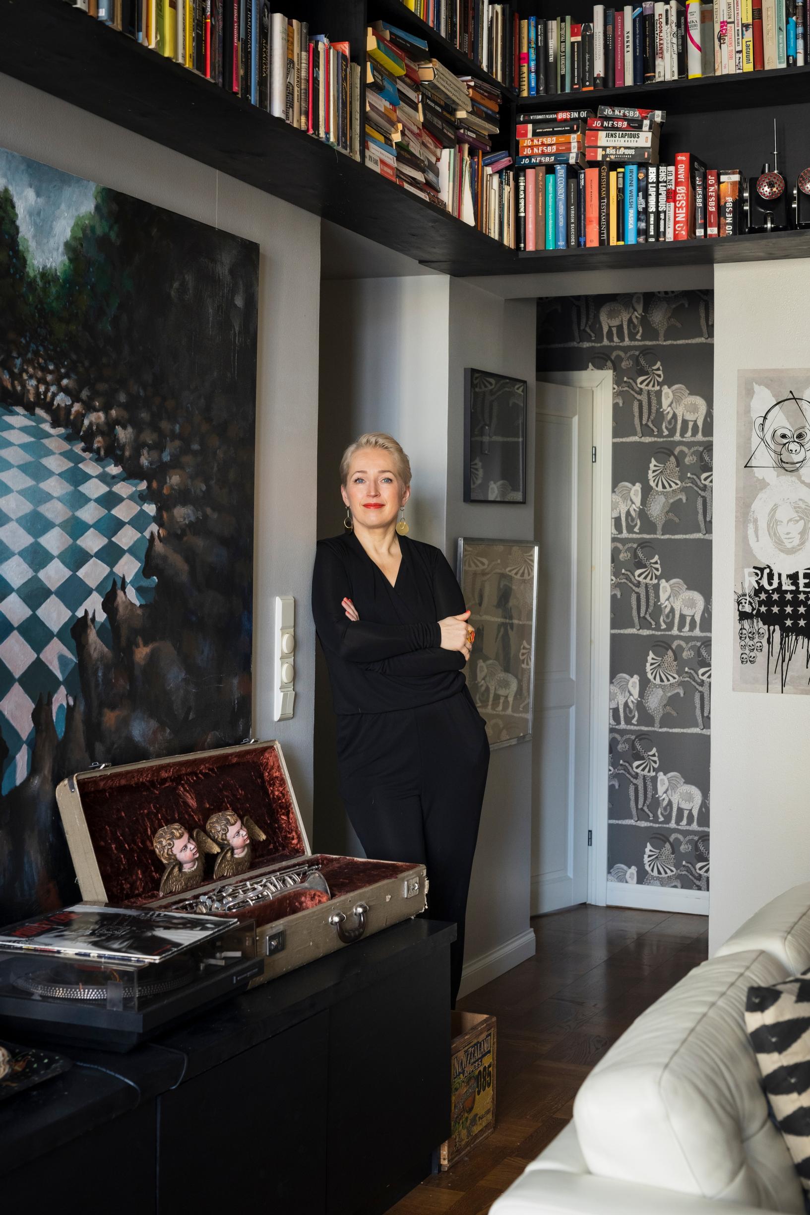 Anna Perhon kotona on aina tilaa taiteelle ja kirjoille: ”Kodin pitäisi kertoa ennen kaikkea asukkaistaan eikä pyrkiä kopioimaan ja miellyttämään muita”