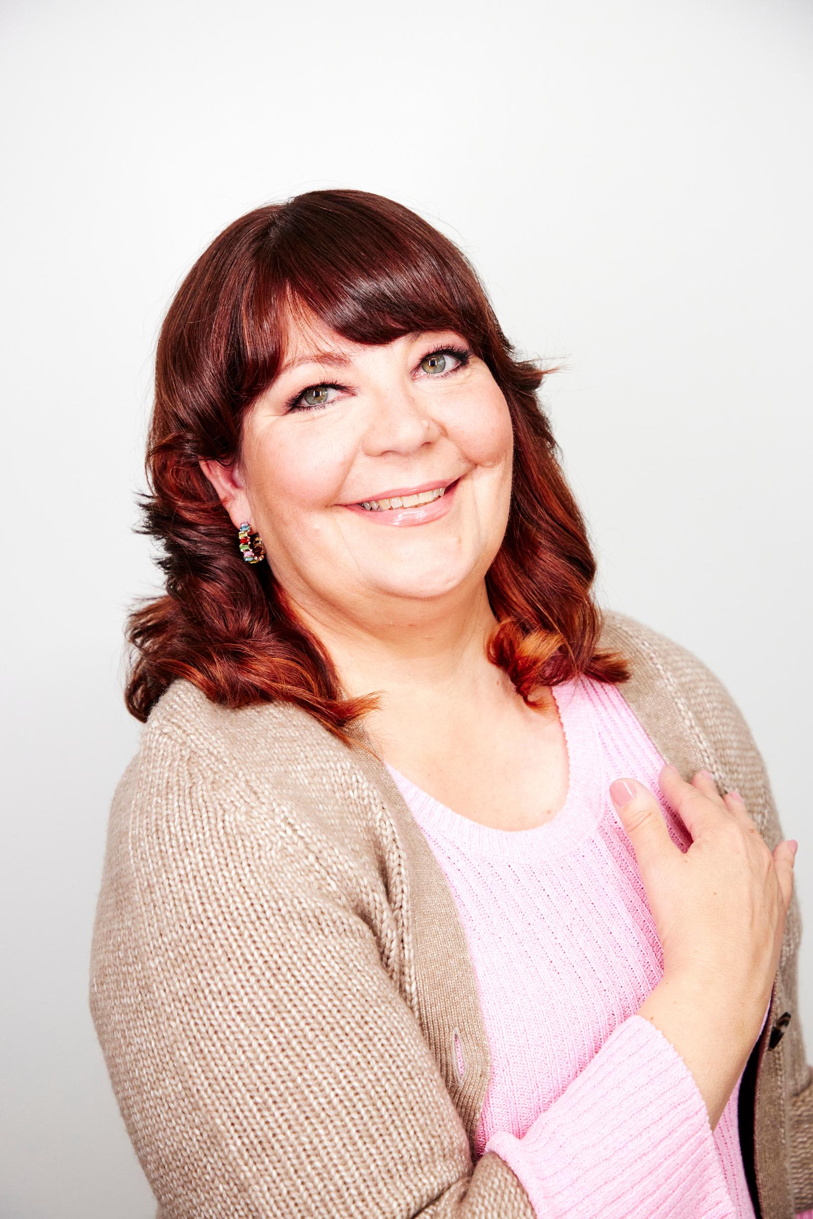 KT:n lukijamalli Anne Suomela sai taipuisiin hiuksiinsa uuden sävyn sekä kevennetyn leikkauksen. Tumma silmämeikki täydentää hiusten sävyjä.