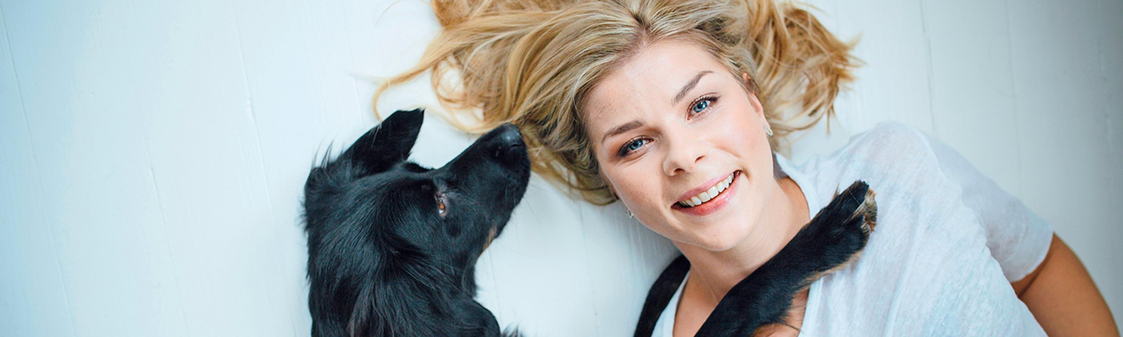 “Varpu laittaa usein tassun olkapäälleni ja katsoo tyynesti syvälle silmiin. Tässä asennossa istumme pitkään hiljaa. Se on kai toverillinen ele, koiran tapa halata. Ne ovat ihania hetkiä.”
