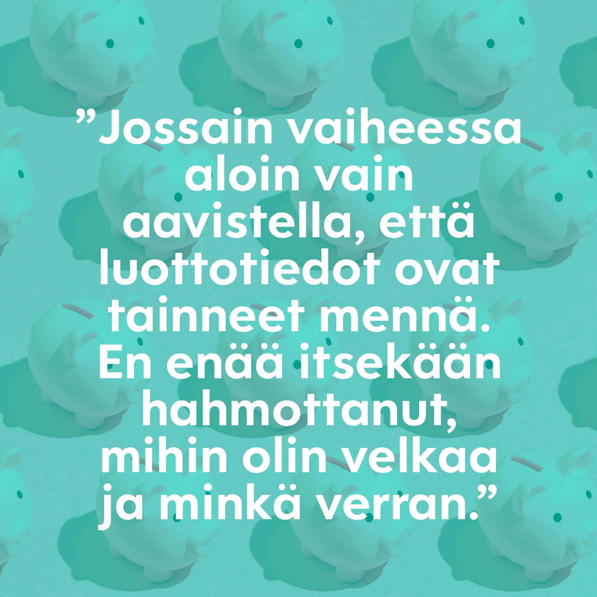 ”Jossain vaiheessa aloin vain aavistella, että nyt ne ovat tainneet mennä. En enää itsekään hahmottanut, mihin olin velkaa ja minkä verran.”