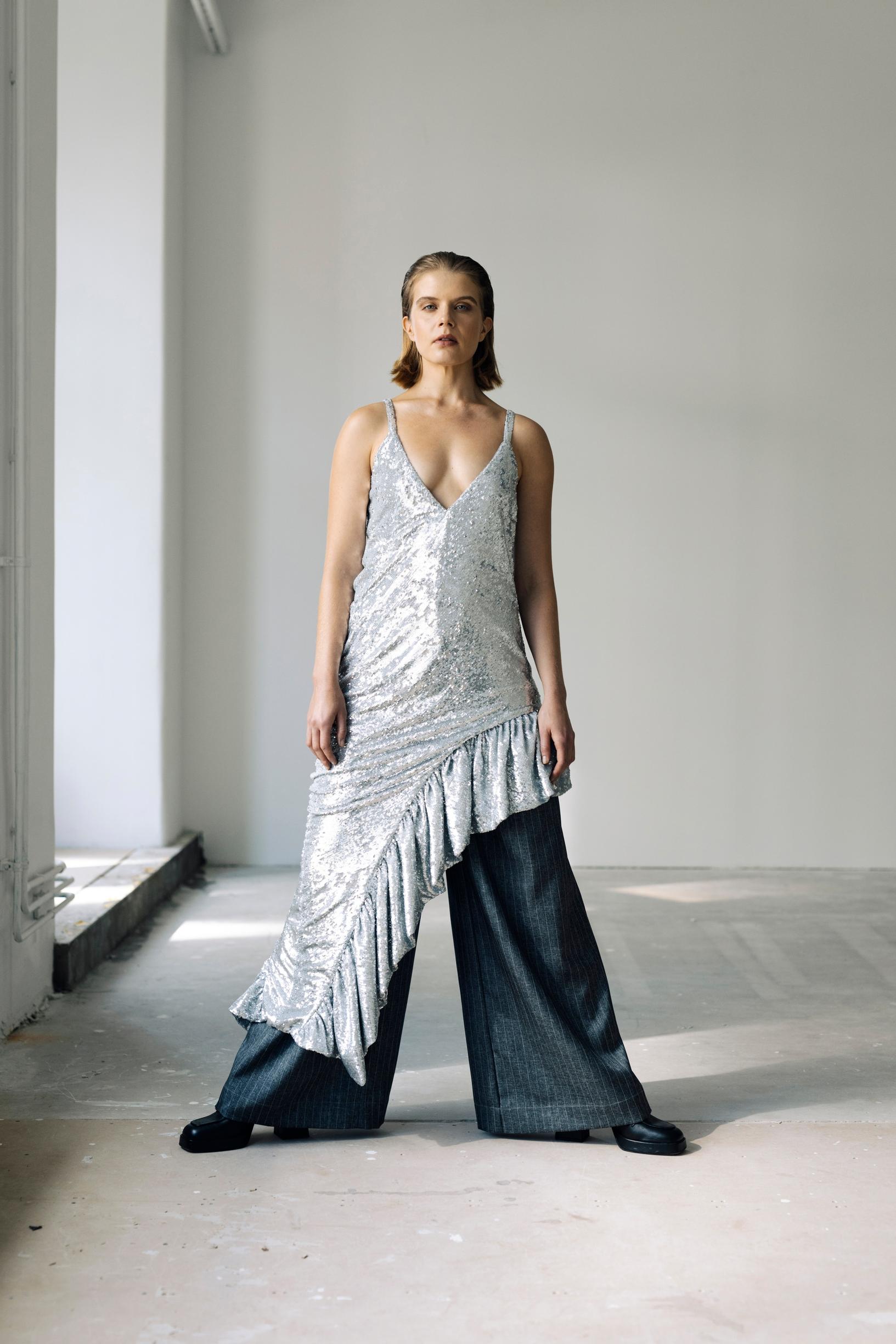 Jos haluat pukea bilemekon mutta olla silti mukavasti housuissa (tähän väliin muistutus taksijonoista ja pyörämatkasta kotiin), valitse molemmat ja korvaa sukkahousut leveillä puvunhousuilla. Paljettimekon käyttöä joudut ehkä odottamaan seuraavaan juhlailtaan, mutta housuista saat myös työpäiviesi luottoystävän.