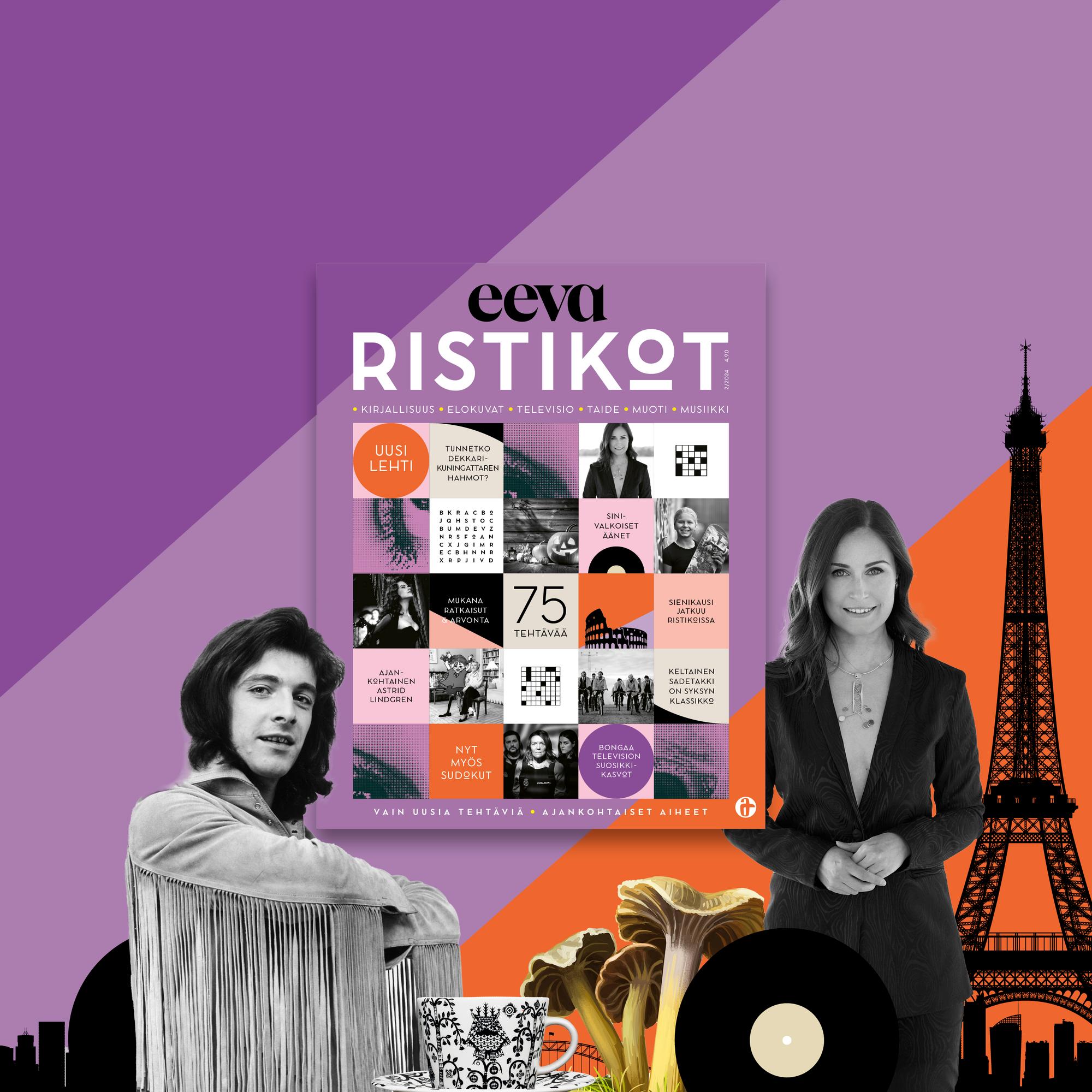 Eeva Ristikot on tyylikäs uusi ristikkolehti kaikille kirjallisuutta, kulttuuria ja kotoilua harrastaville. Lehdessä on aina 68 sivua ja vähintään 60 tehtävää.