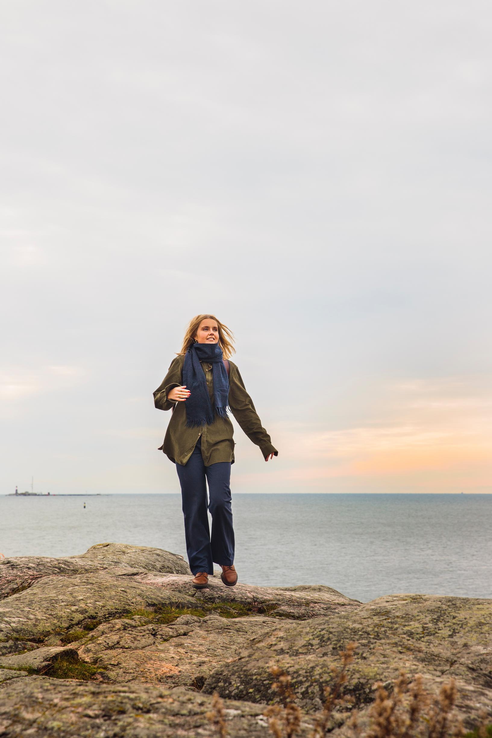 Saari muuttuu vuodenaikojen mukaan. Kesäisin olen viettänyt täällä pysähtyneitä päiviä löytämilläni salaisilla kallioilla. Niille kiivetään erään bastionin ikkunan läpi ja niiltä aukeaa näkymä avomerelle ja Vallisaareen. Kalliot laskeutuvat loivasti mereen ja niillä kasvaa pehmeää levää. Niiltä on ihana mennä uimaan.