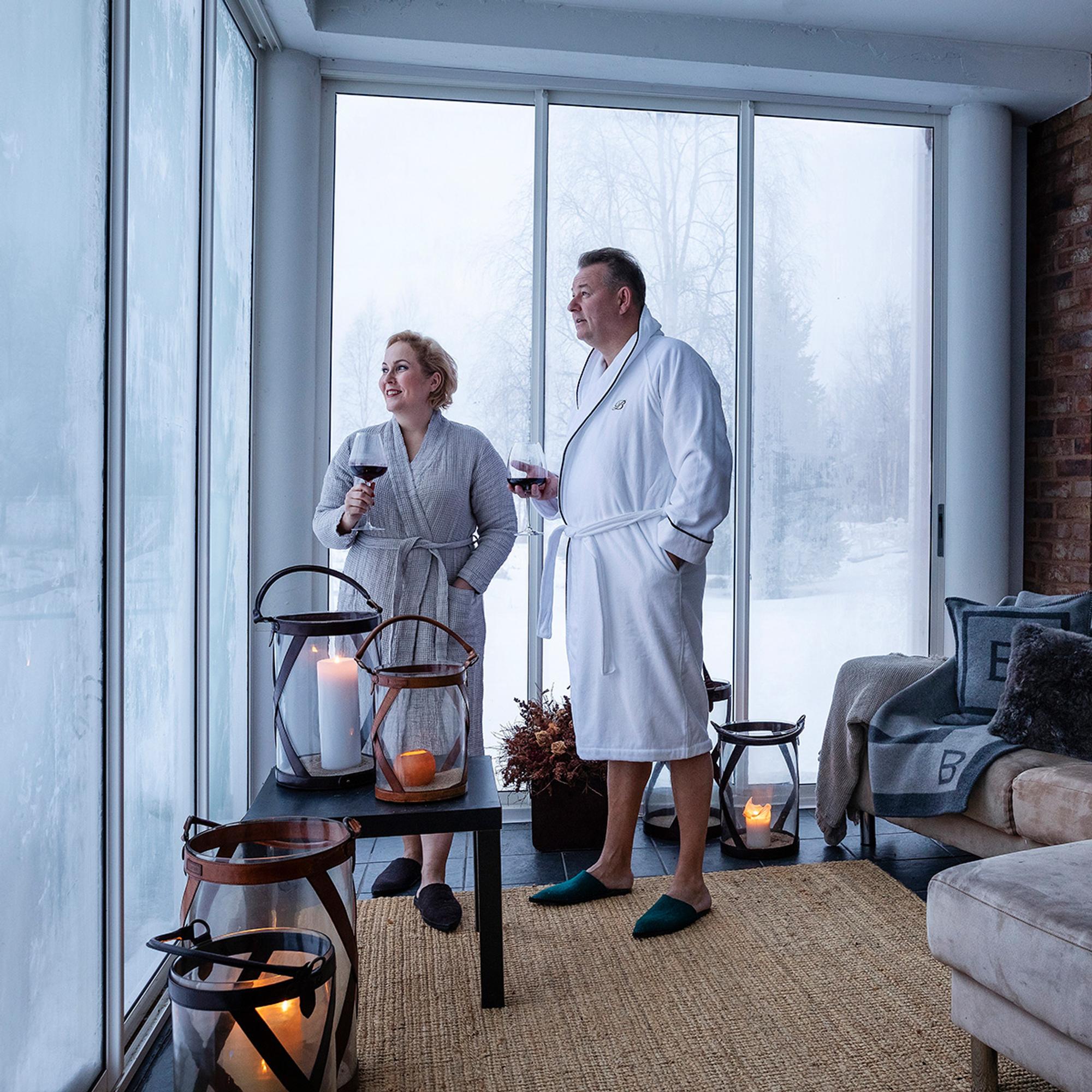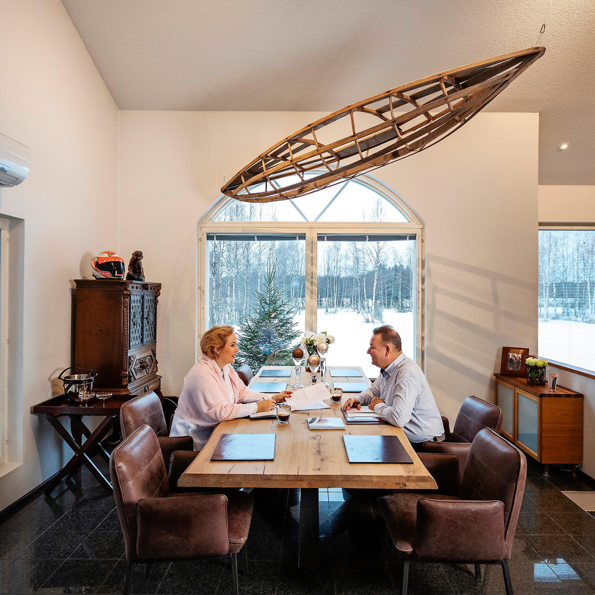 Avaran huoneen suurista ikkunoista näkyy peltomaisemaa, mikä lisää tilan tuntua. Kempele on Jaarojen mielestä hyvä paikka asua. Lentokentälle on lyhyt matka, samoin Ouluun, jossa sijaitsee Balmuirin pääkonttori varastoineen ja viime vuonna avattu myymälä.