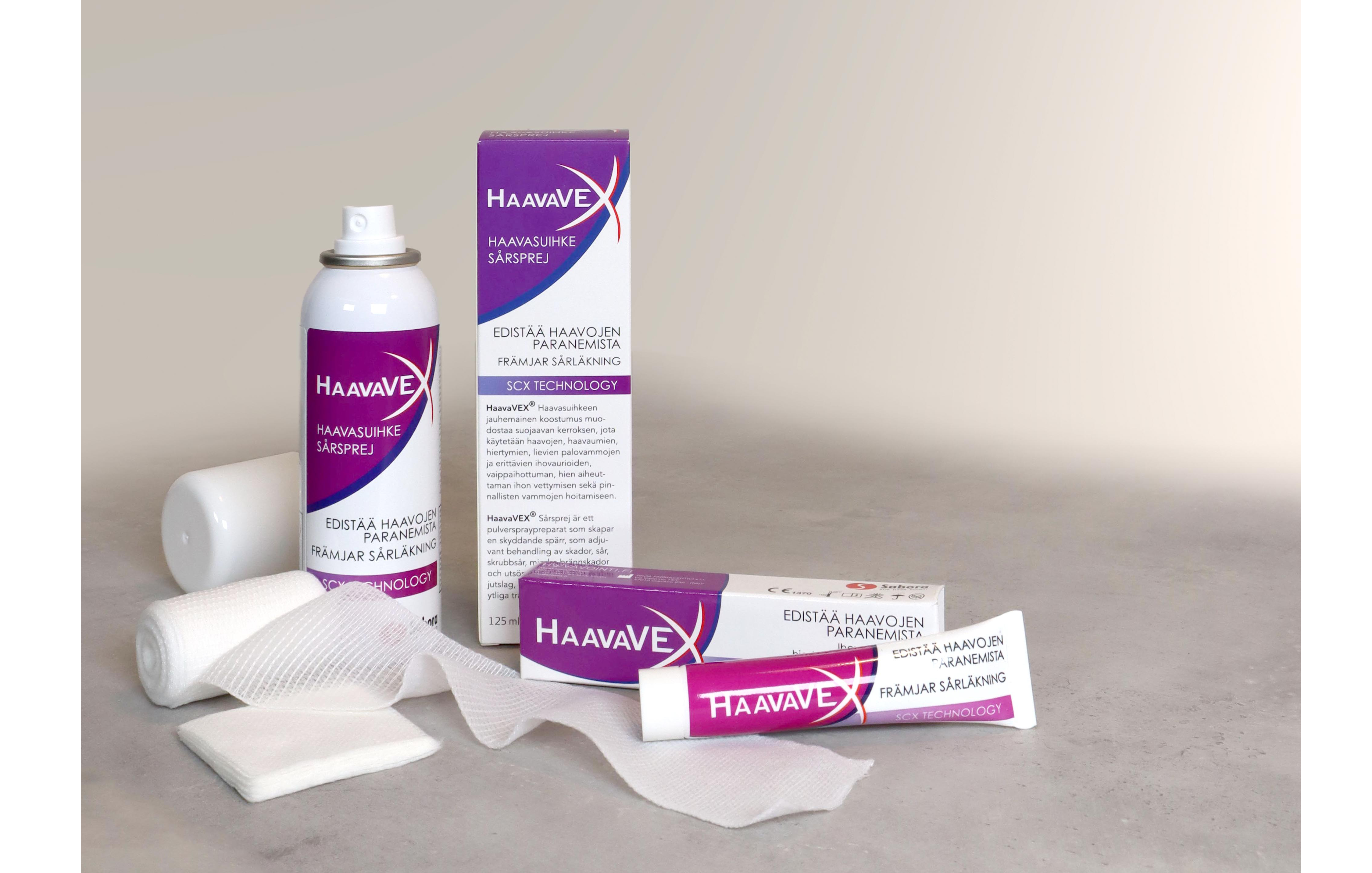 HaavaVEX®-haavanhoitotuotteet sisältävät patentoidulla SCX-teknologialla vakautetun hopean lisäksi ihoa kosteuttavaa hyaluronihappoa. Tuotteet muodostavat tehokkaan suojan mikrobeja vastaan ja edistävät kudoksen luonnollista uusiutumista nopeuttaen samalla haavan paranemista.