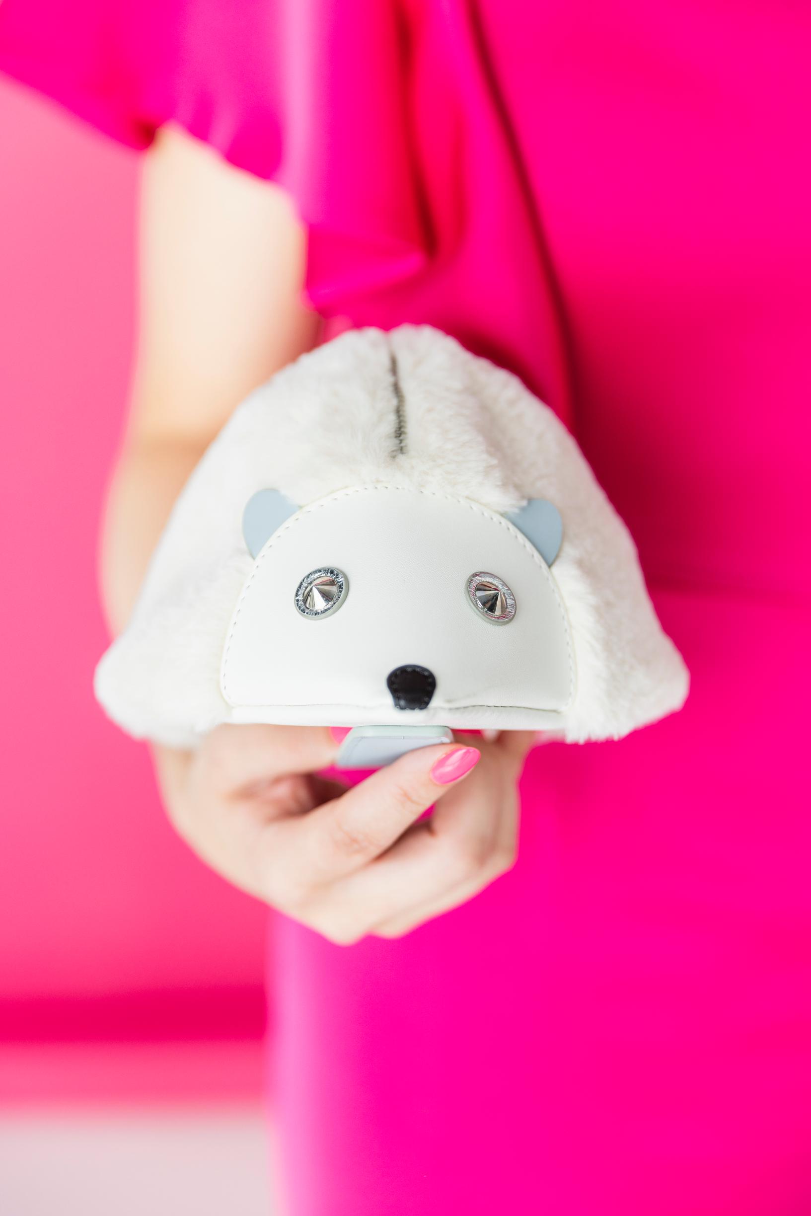 Tykkään maustaa asujani hullunkurisilla asusteilla. Yksi suosikeistani on Milanosta ostamani Furlan siililaukku. Hulvattomat asusteet sopivat etenkin bisnestapahtumiin. Moni aloittaa keskustelun niiden pohjalta helpommin.”