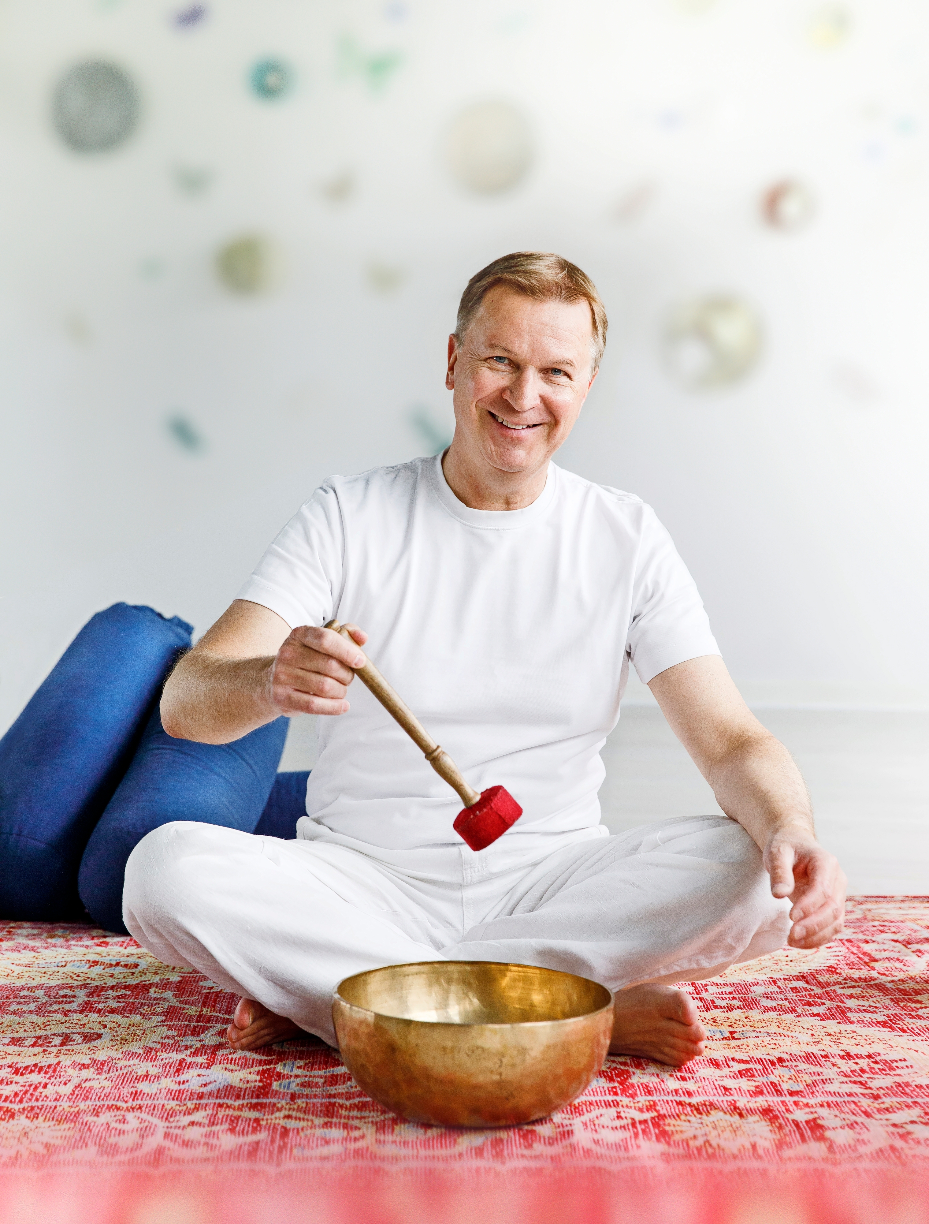 ”Yritän olla opiskelematta liikaa, sillä joogassa on niin paljon suuntauksia, että pääni halkeaisi, jos ahmisin kaiken tiedon. Lisäksi olen muusikko, isä ja puoliso. Luotan oppimiini taitoihin ja opin pienin annoksin lisää.”
