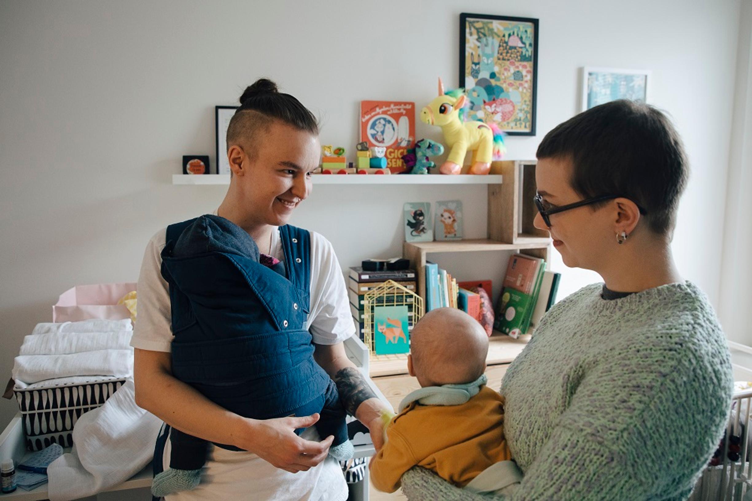 Emil ja Olivia ovat pienten kaksosten onnellisia vanhempia. Hedelmöityshoidoissa käytettiin transsukupuolisen Emilin munasoluja, ja Olivia synnytti vauvat.