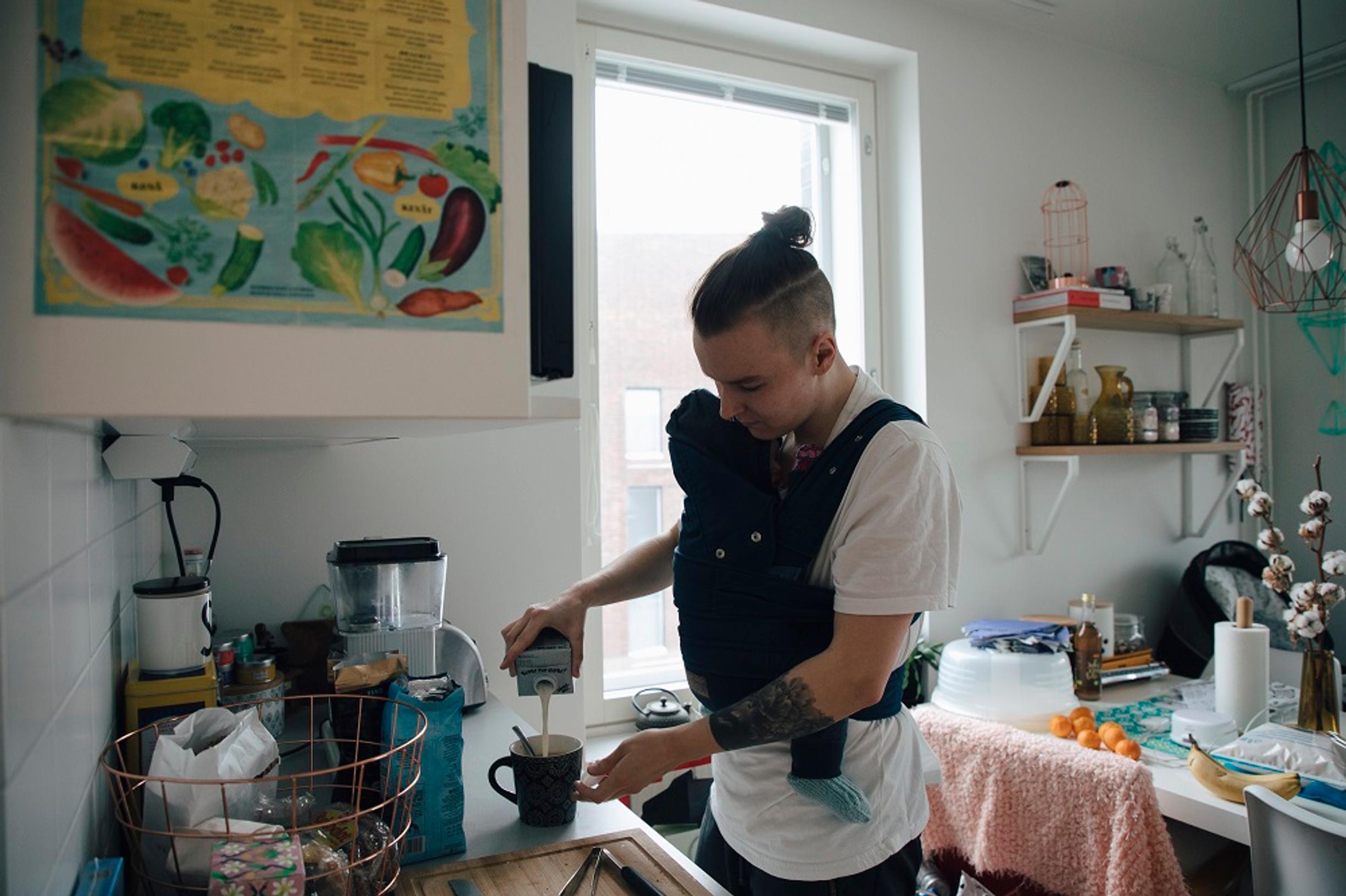 Kookas ruskea Nada-koira kurkistelee ovelle turkoosinvihreissä pöksyissään. Sillä on juoksu. Helsingin Kalasatamassa sijaitsevan kodin tunnelma on levollinen. Kaksosvauvat nukkuvat parvekkeella, pöydällä on itkuhälytin.