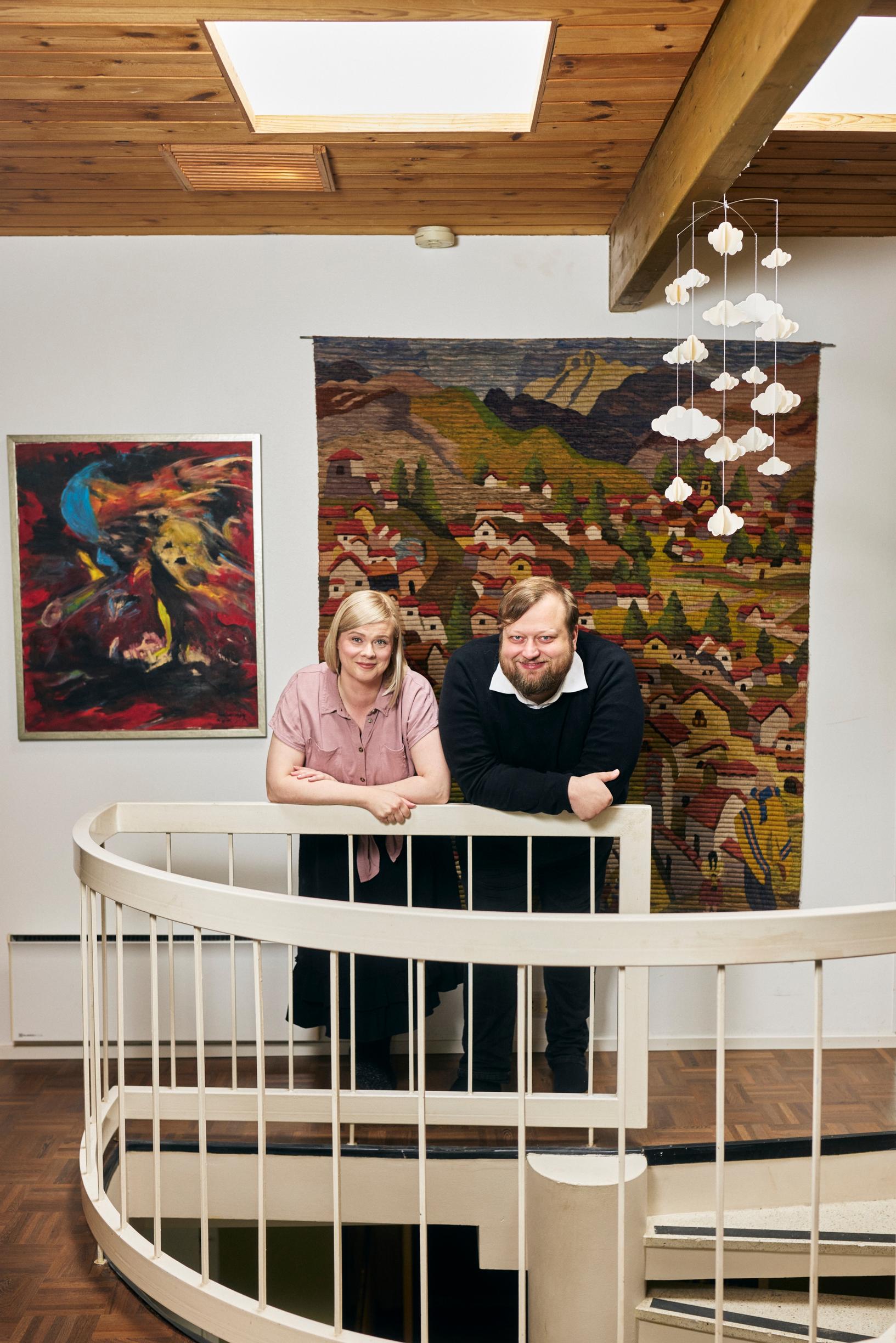 ”Lauri haluaa viihdyttää muita, ja se on hirveän kiva piirre puolisossa. Hän ei ota itseään vakavasti muussa kuin taiteessa ja auttaa minuakin näkemään, ettei kaikki ole niin vakavaa. Nauramme tosi paljon”, Riikka sanoo.