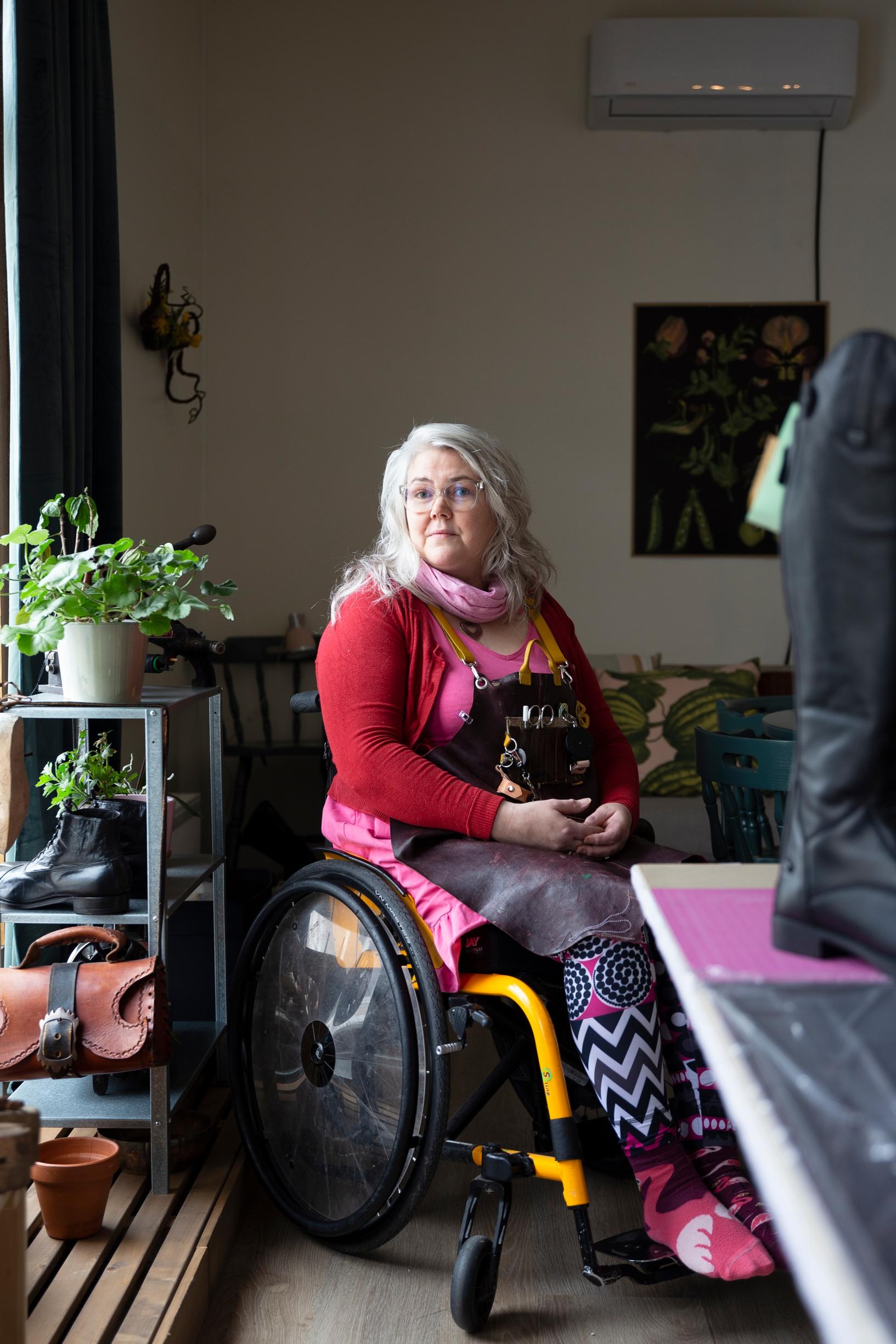 Lihasrappeuma toi Terhi Kakon elämään rankat kivut ja pyörätuolin – mutta myös uuden ammatin. Oman suutarinliikkeen perustanut yrittäjä ei suostu murehtimaan tulevaisuutta.