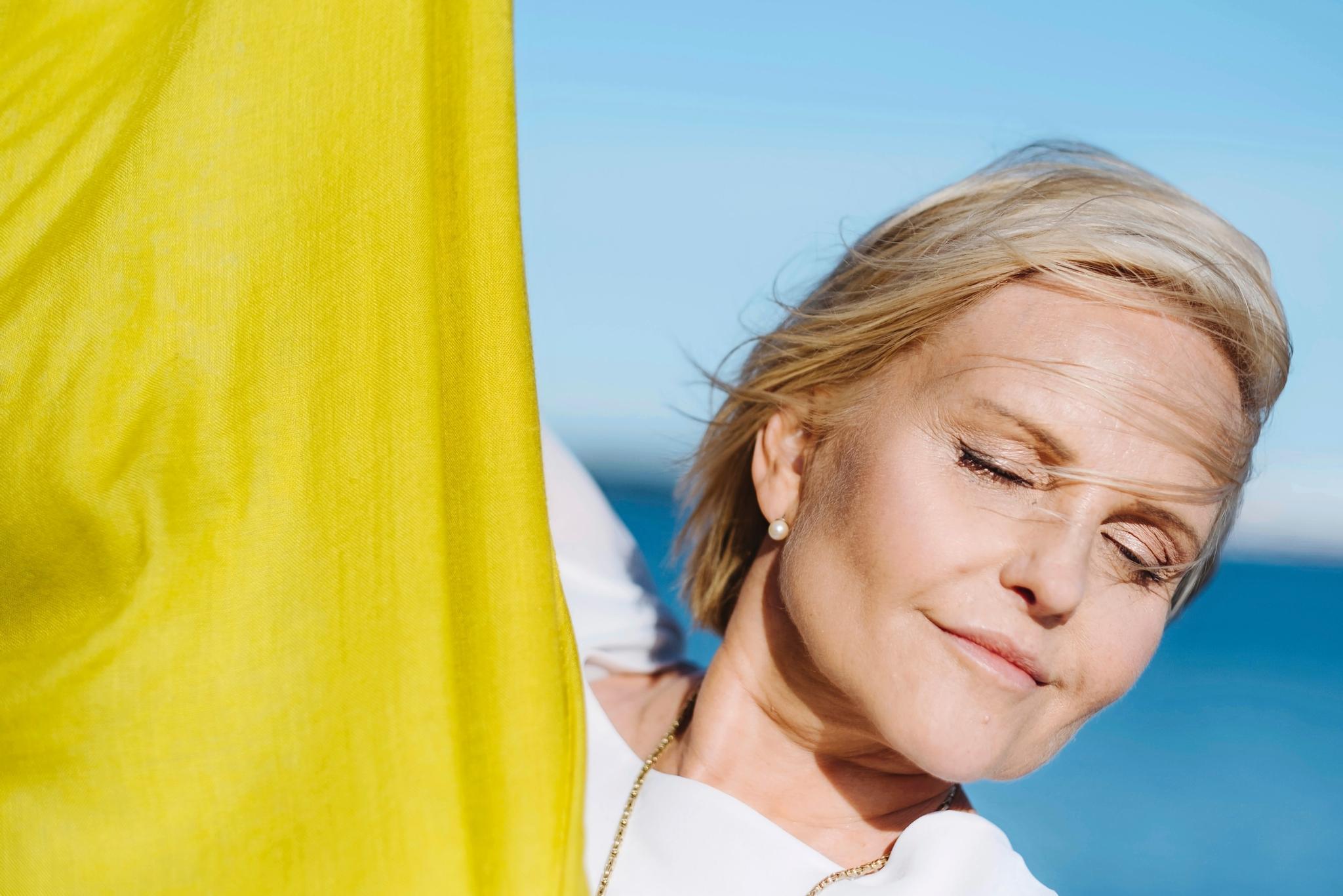 On helteinen elokuun päivä, ja Marja Putkisto-Mitchell istuu pitkästä aikaa rantakahvilassa Helsingin-kotinsa lähellä.