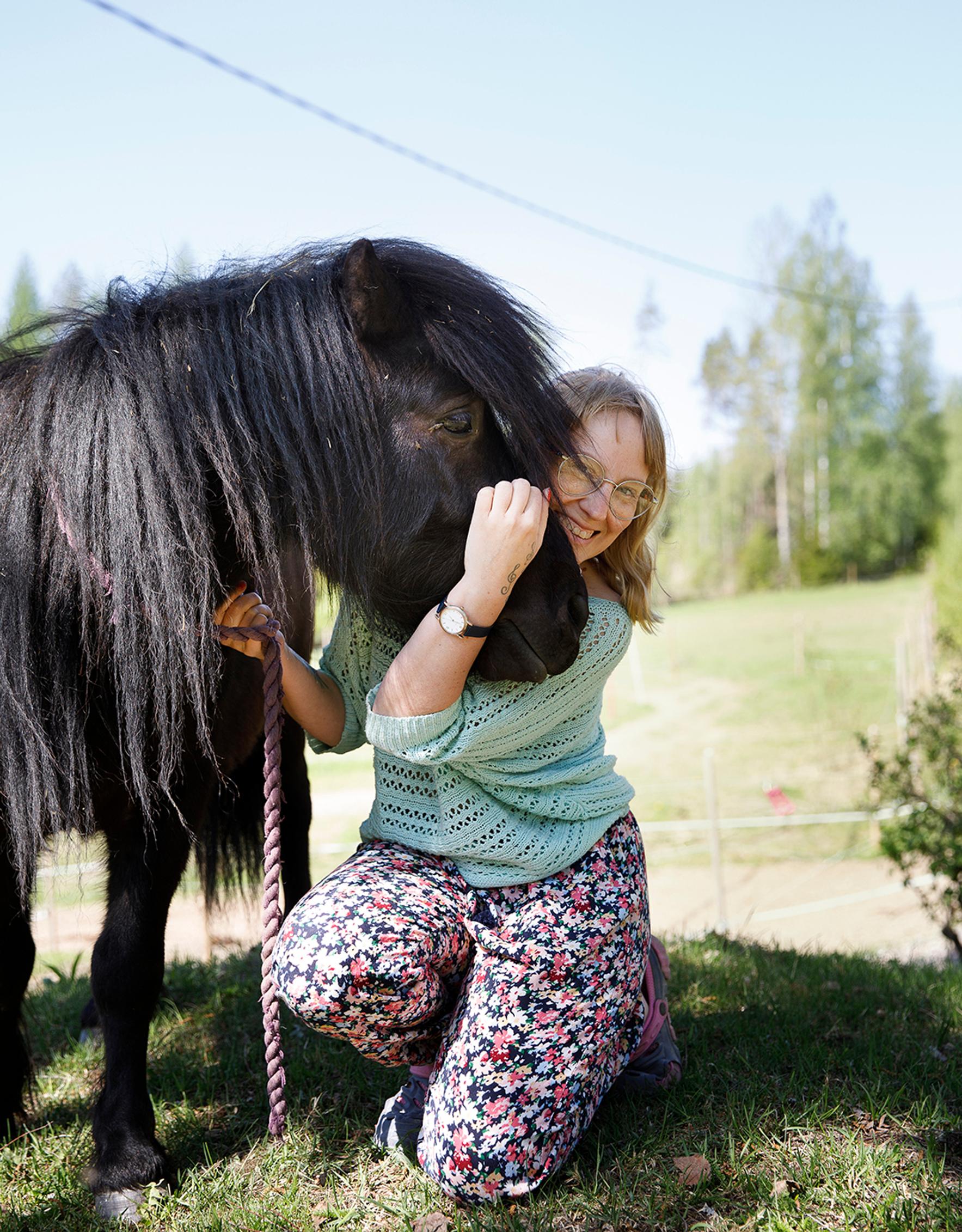 Sarjakuvataiteilija Milla Paloniemi, 39, on perustanut Tampereen Teiskoon, Velaatan kylään yhden naisen onnelan. Ponifarmilla on tällä hetkellä kuusi hevosta: Kromi, Hali, Vessaharja, Onni, Rokki ja Tuure.