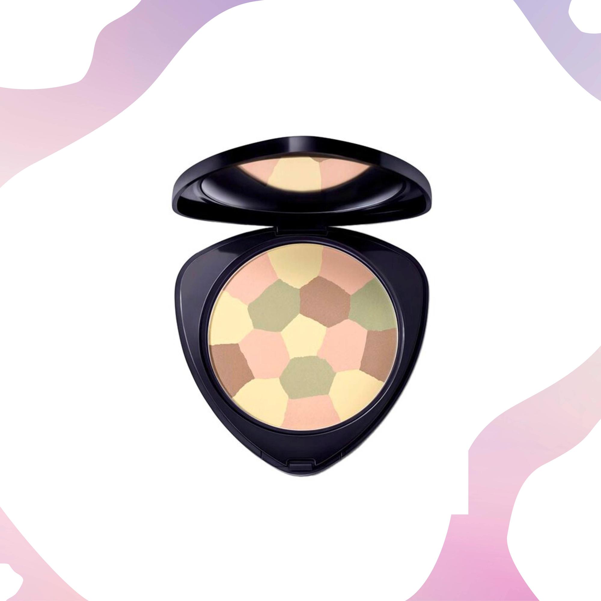 Kiinteä monisävyinen puuteri on erinomainen meikkipohjan viimeistelyyn. Vihreä poistaa punaisuutta ja aprikoosi sameutta, ruskea tasoittaa.