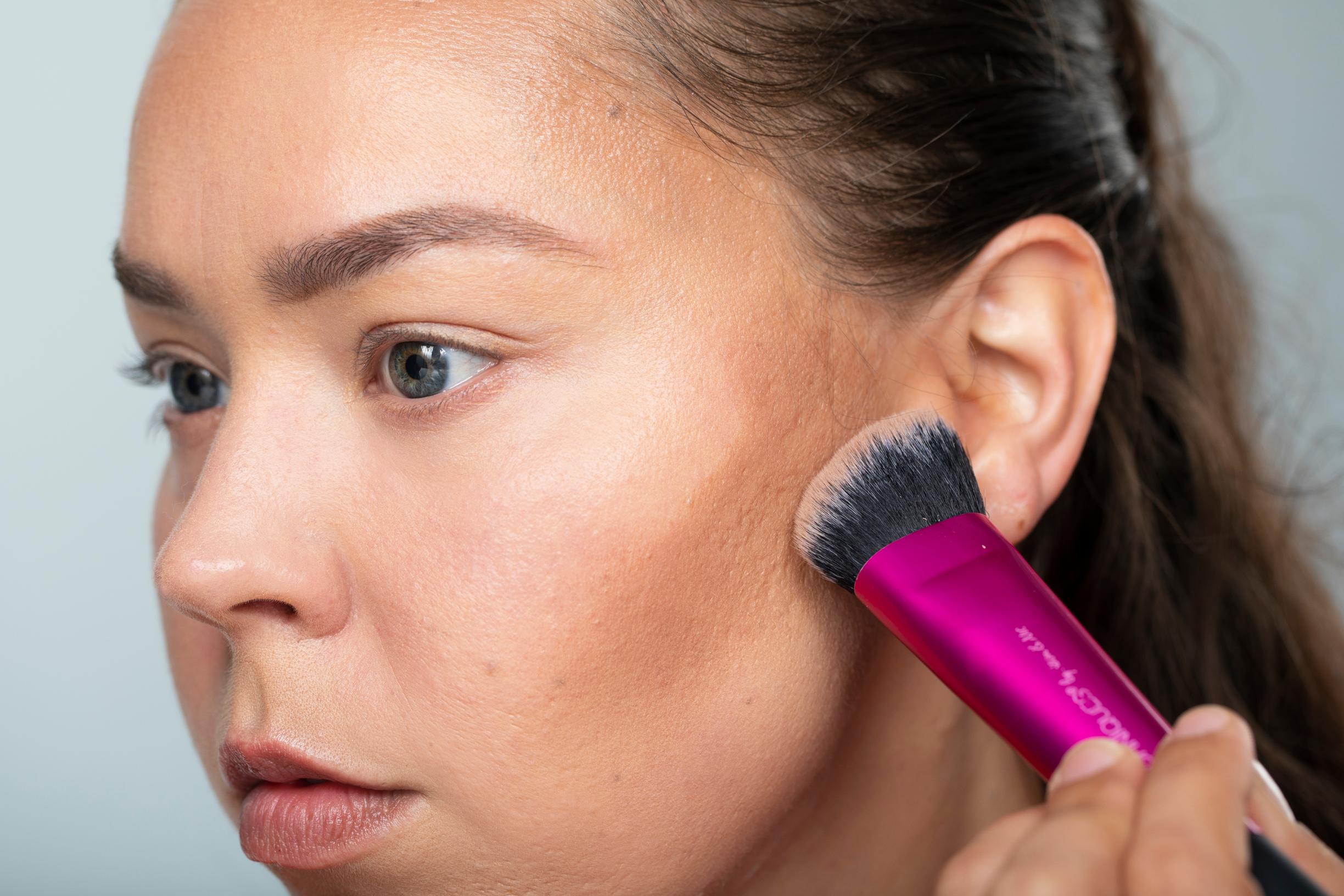 Vinkki: Tee varjostukset kasvoille ennen meikkivoiteen levitystä. Ota sitten meikkivoidetta samaan kostutettuun sieneen, jolla pehmensit varjostuksia, ja levitä kasvoille. Meikkivoide pehmentää varjostetut kohdat, ja meikkipohjasta tulee saumaton ja luonnollinen.
