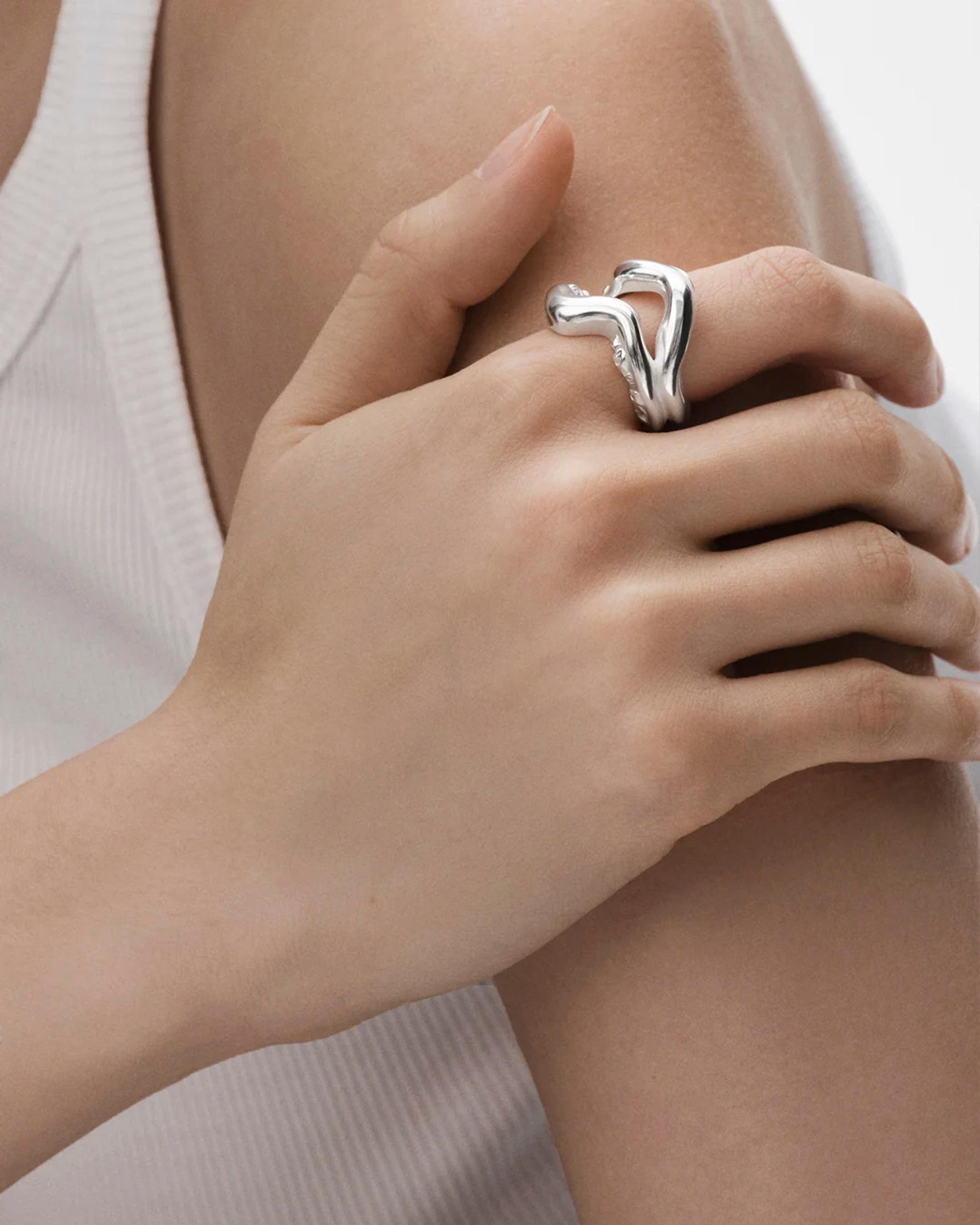 Puristavatko sormukset? Kalevala Korun Männyt-sormusta on neljä kokoa, ja niitä voi vielä hienosäätää. Kierrätyshopeasta tehty koru kietoutuu sormen ympärille kuin käppyrämännyn oksa. Sarja on Ildar Wafinin suunnittelema – ja mikä parasta – Suomessa käsityönä valmistettu.