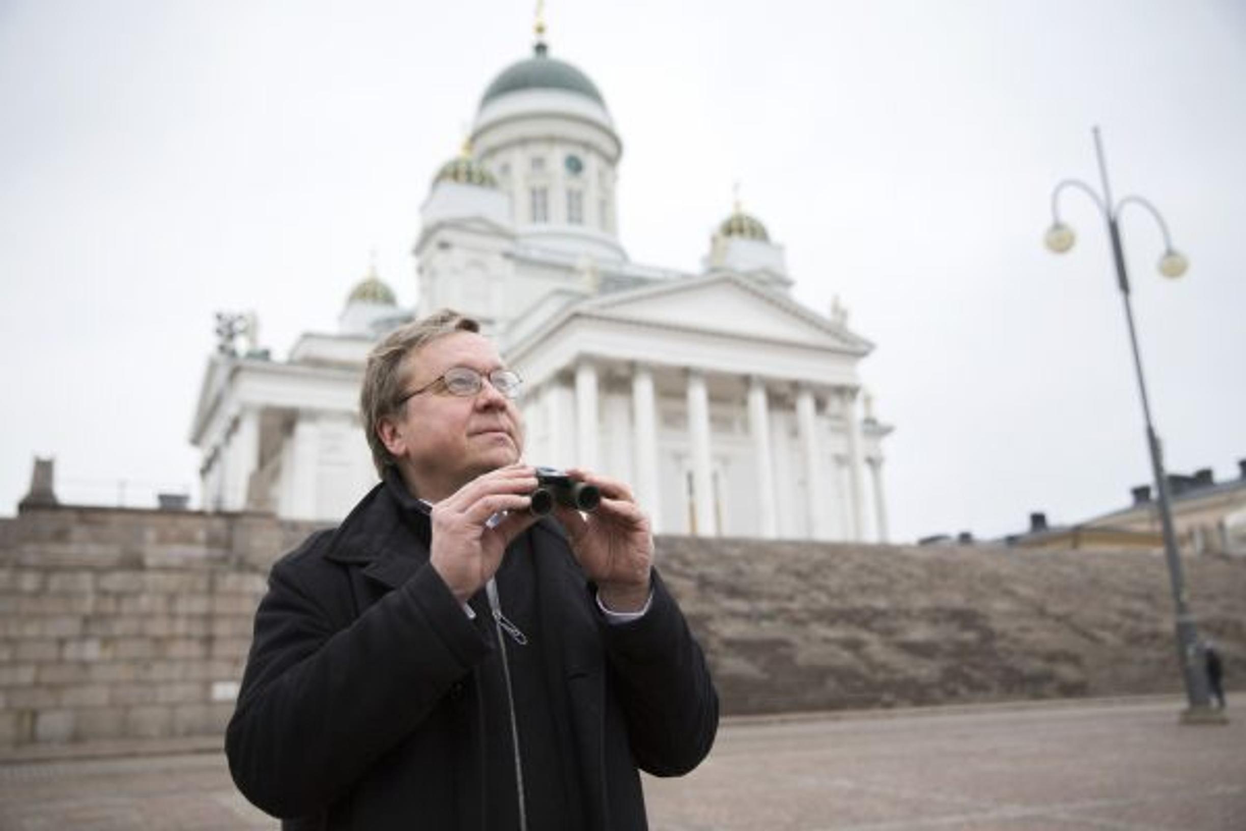 Parvi harmaalokkeja on valloittanut Helsingin kauppatorin kulman. Kevään merkki, huomauttaa Pekka Sauri, 63, seuratessaan syöksykiitoja ikkunasta. Apulaiskaupunginjohtajan työhuoneesta on suora näkymä torille ja Esplanadin puistoon. Se on lintubongarin mieleen.