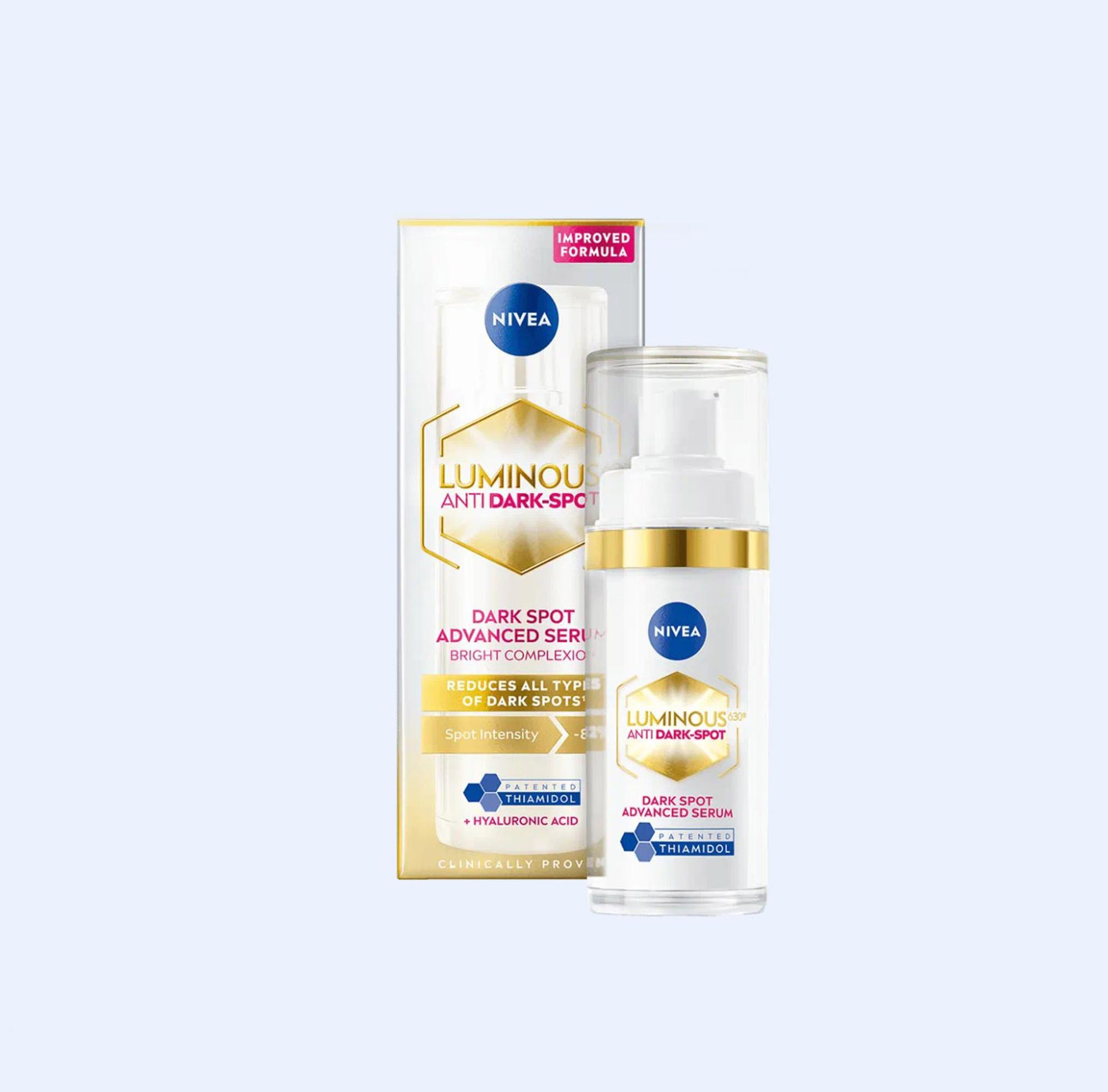 LUMINOUS630® Anti Dark-Spot on NIVEAn ihonhoitosarja, joka vähentää näkyvästi pigmenttiläiskiä ja palauttaa ihon tasaisemman sävyn. Tehokkaan seerumin, kosteuttavan päivävoiteen ja ravitsevan yövoiteen ytimessä vaikuttaa innovatiivinen Thiamidol®-aktiiviainesosa. Se kohdistuu suoraan pigmenttiläiskiin – vaalentaen näkyviä läiskiä ja ehkäisten uusien syntymistä. Thiamidol® tehoaa myös ihon pinnan alla oleviin, vasta kehittymässä oleviin muutoksiin. Lopputuloksena on kosteutettu, täyteläinen ja tasapainoinen iho, joka hehkuu elinvoimaa aamusta iltaan.