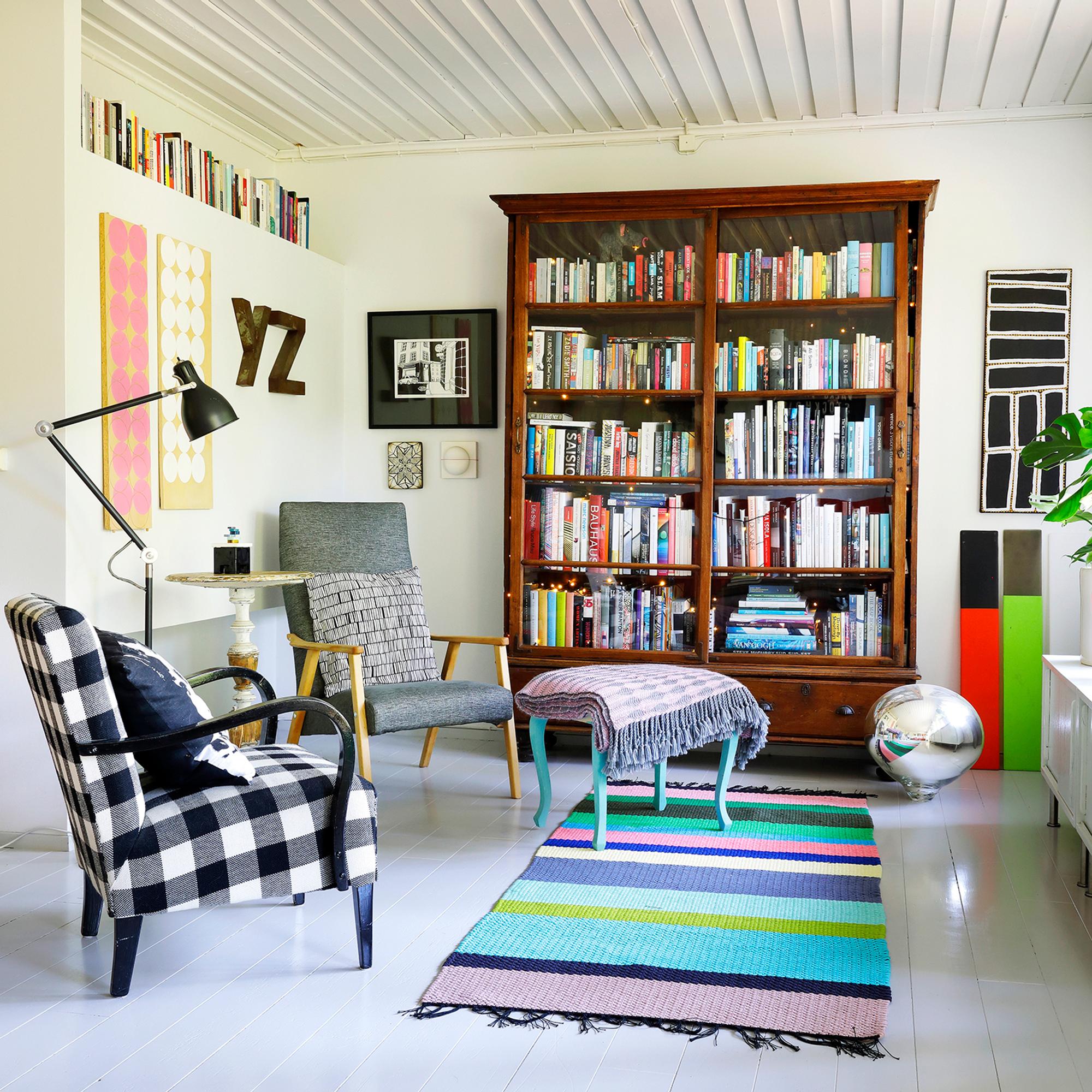 Anu vaihtelee huonekalujen järjestystä mielellään. Kun hän esittelee olohuoneen kirjastonurkkauksen sisustusta, hän tulee paljastaneeksi, että edellisenä päivänä huone näytti aivan erilaiselta.