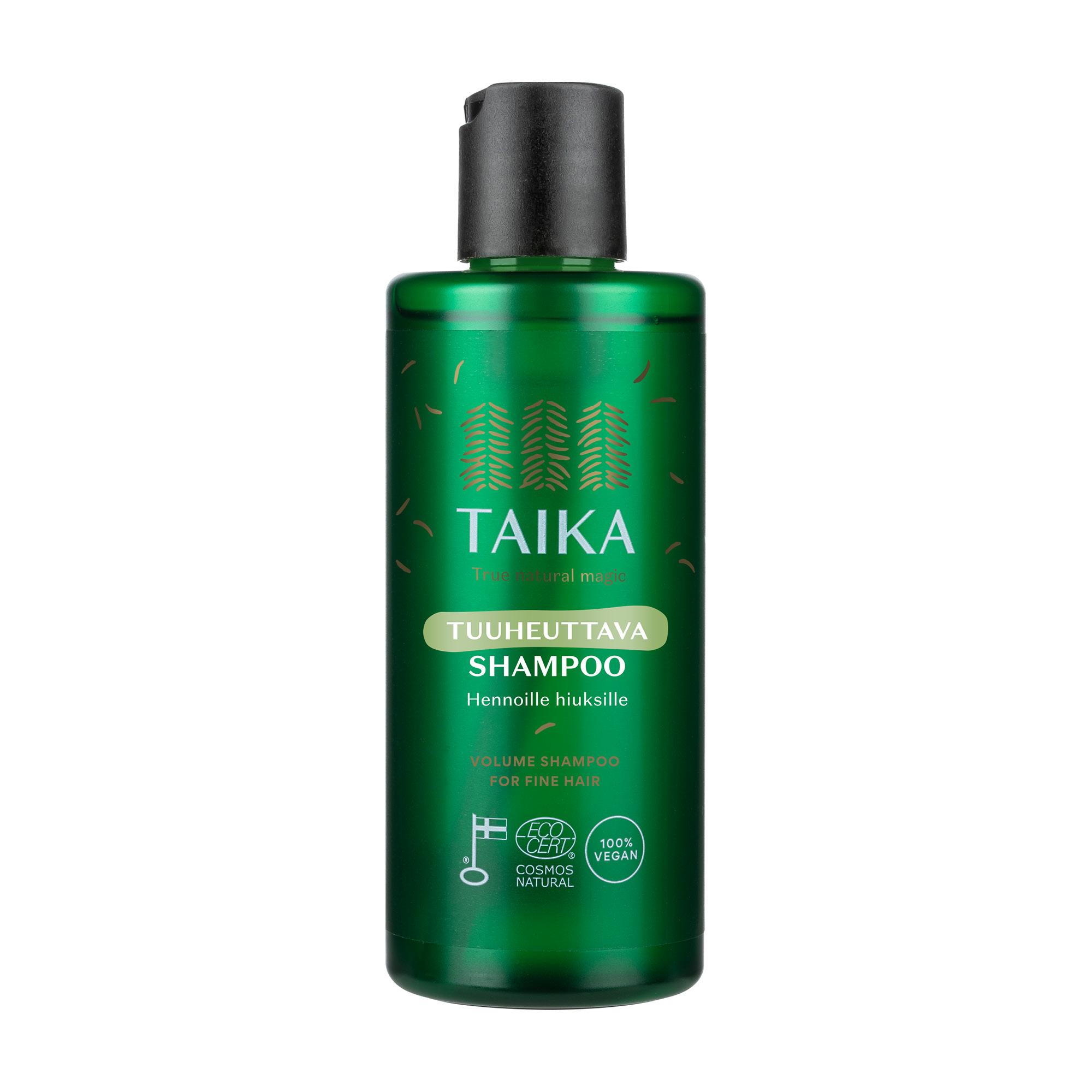 Suomessa valmistettu tuuheuttava sampoo on todellista lähikosmetiikkaa. Sampoo vahvistaa hiuksia herneproteiinilla ja sen sisältämä luomunokkosuute sekä ehkäisee hiustenlähtöä että vähentää hiuspohjan rasvoittumista. Taika Tuuheuttava Shampoo 9,50 e.