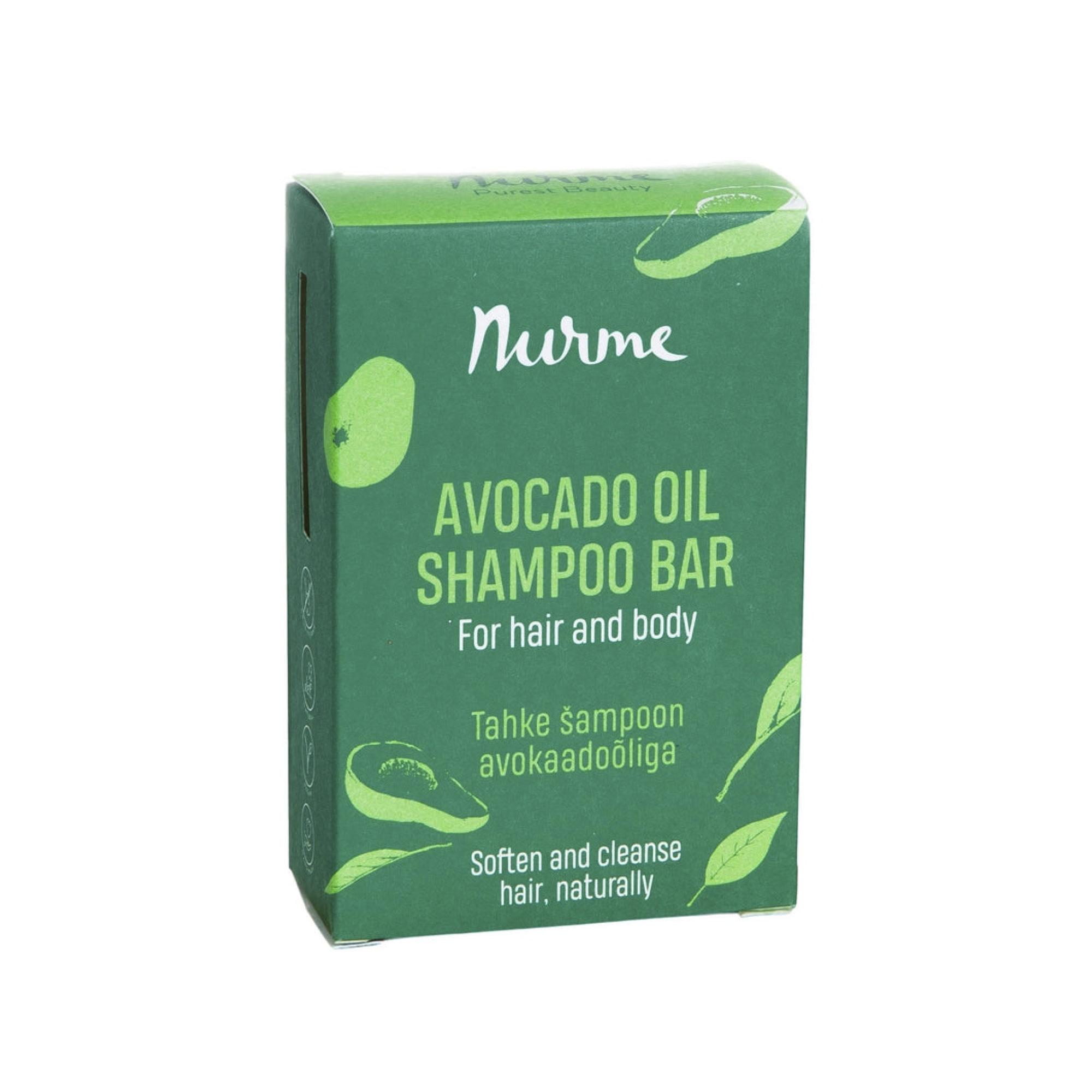 Elottomat ja sameat hiukset saavat kaivattua kiiltoa avokadoöljyä sisältävästä palasampoosta. Vedetön, kiinteä sampoo on oiva matkatuote, sillä se sopii hiusten lisäksi myös käsien ja vartalonpesuun. Nurme Avocado Oil -sampoopala 10,90 e.