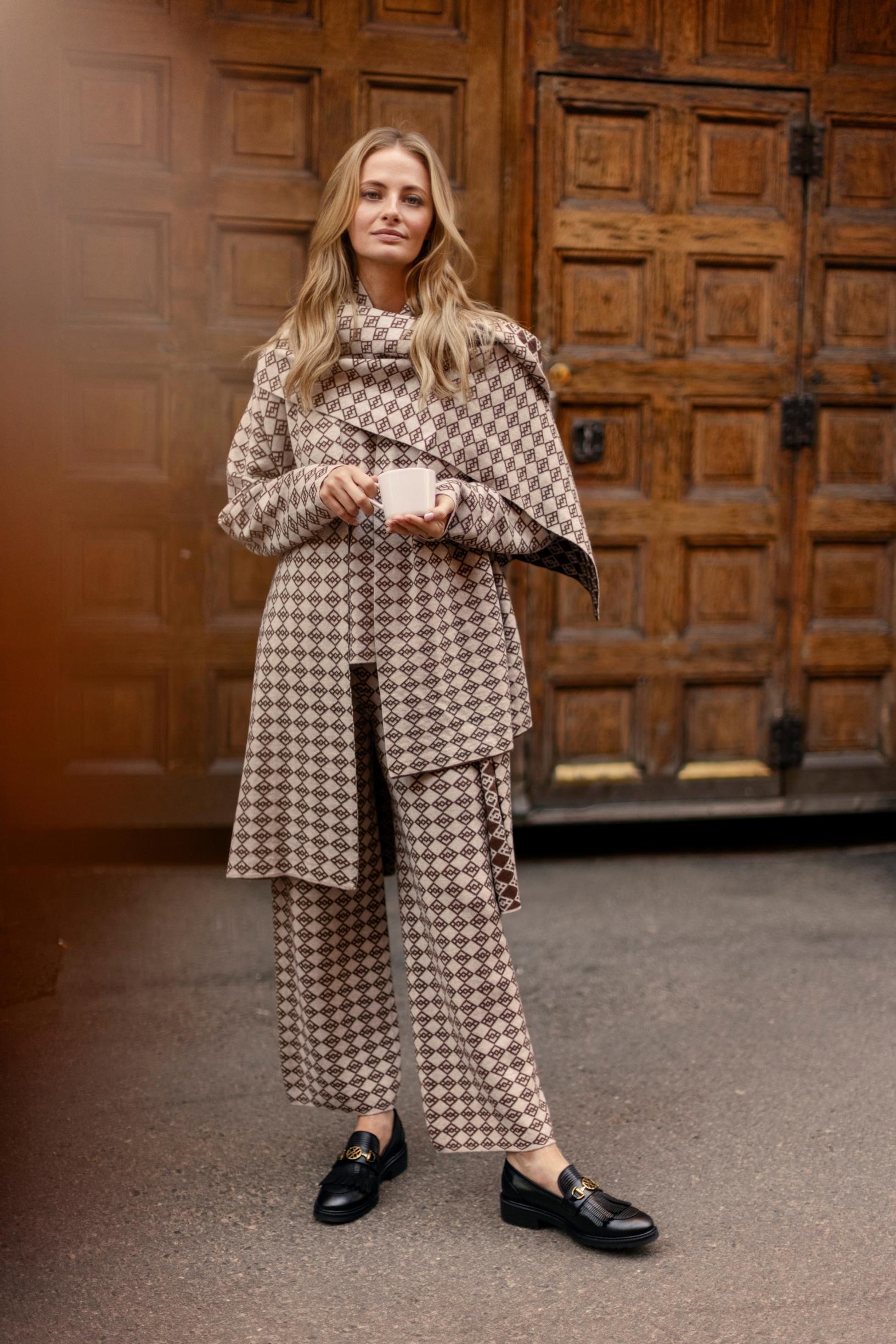 Näkyyks logo? Nyt näkyy – päästä varpaisiin. Kun sävy on seesteinen, logot näyttävät printtikuosilta, joka on myös tämän syksyn juttu.