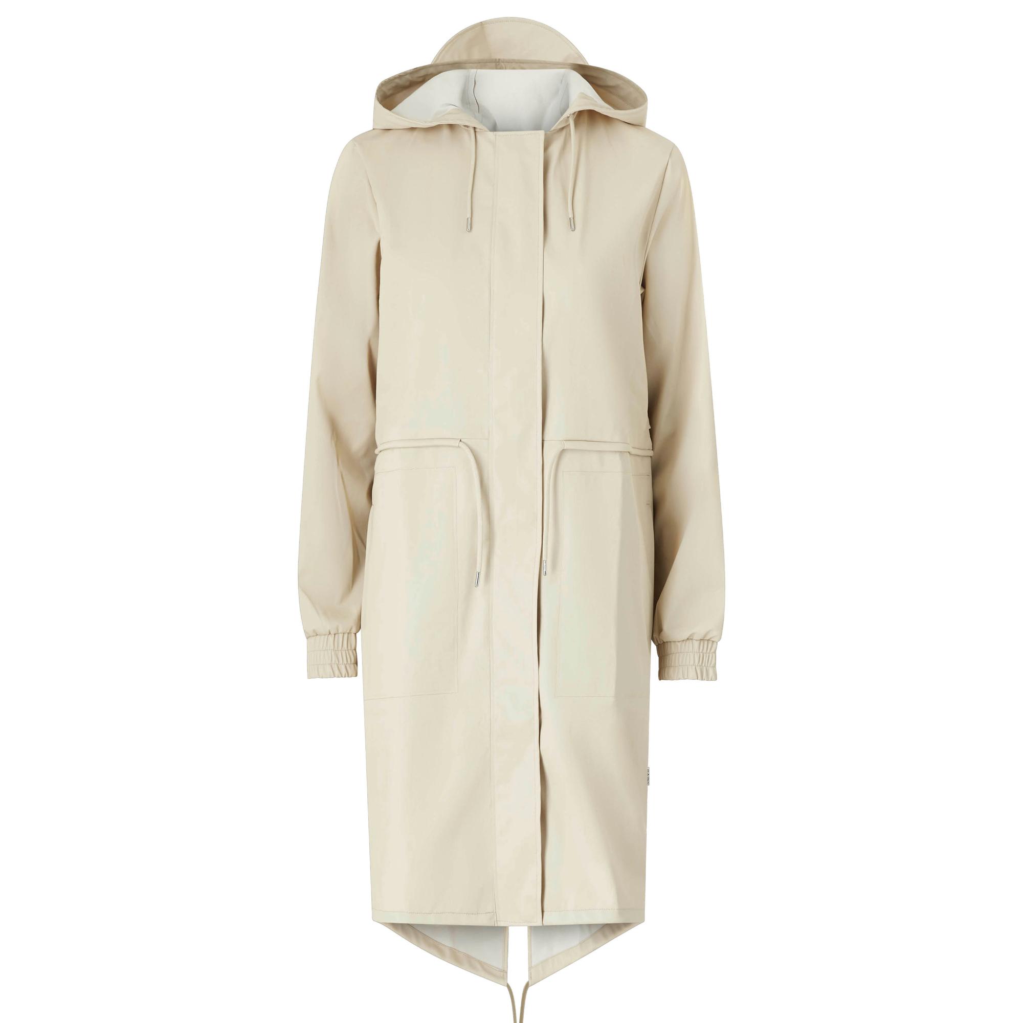 Kun pitkän sadetakin yhdistää kevyttoppatakkiin, sillä pärjää pikkupakkasissakin.