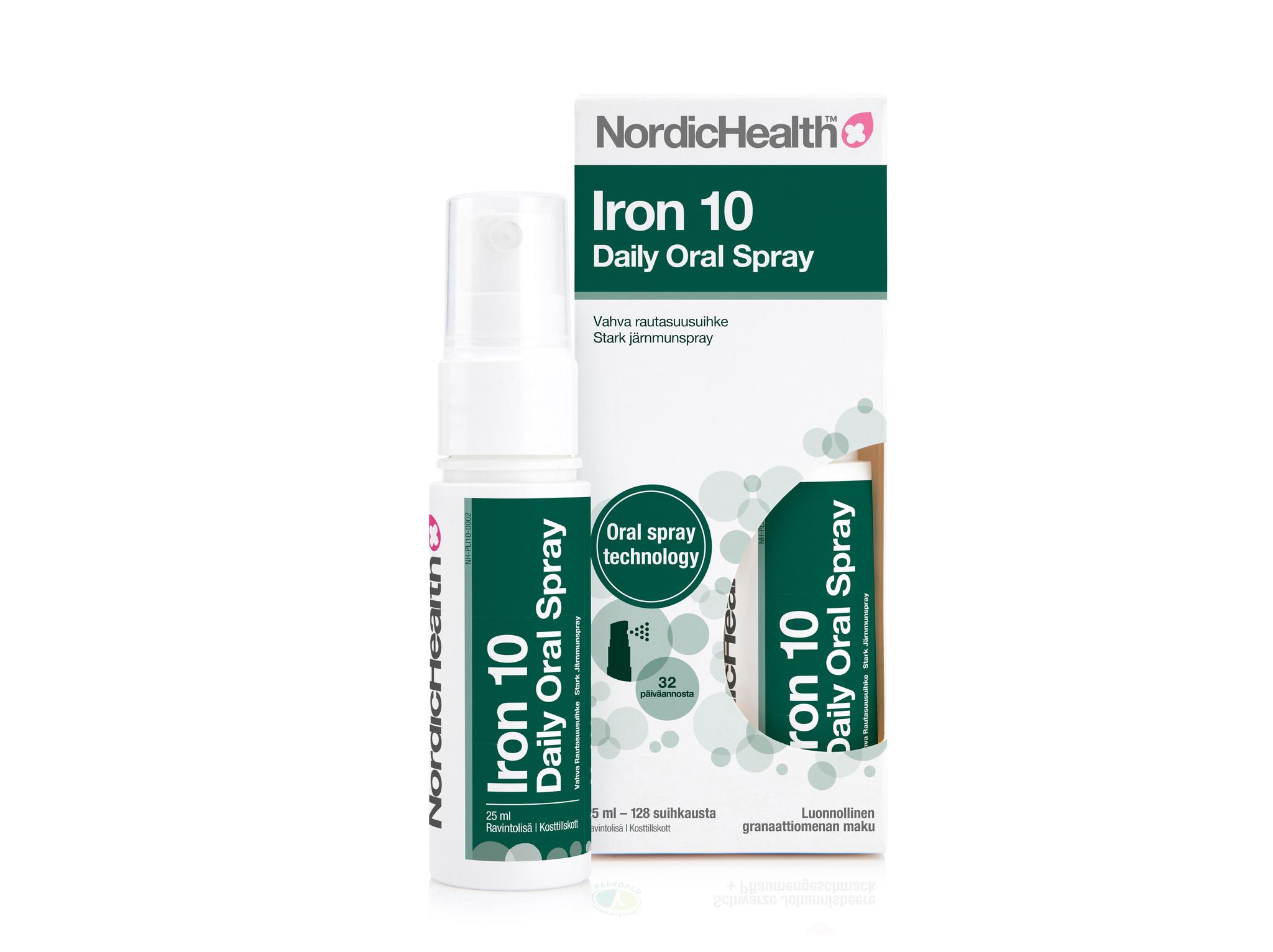 Nordic Healthin Iron10-suusuihke on saatavilla Yliopiston Apteekista sekä Ruohonjuuresta.