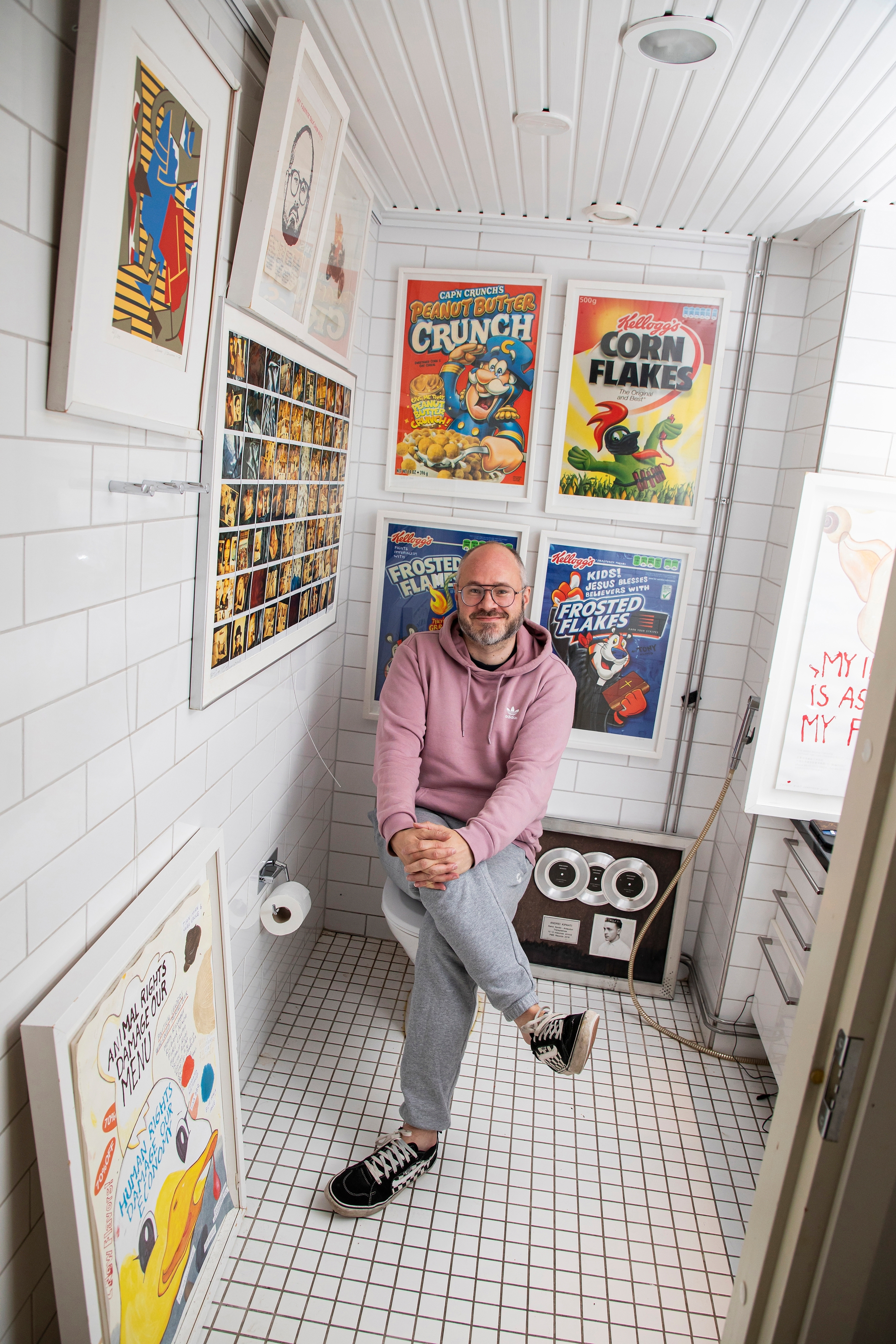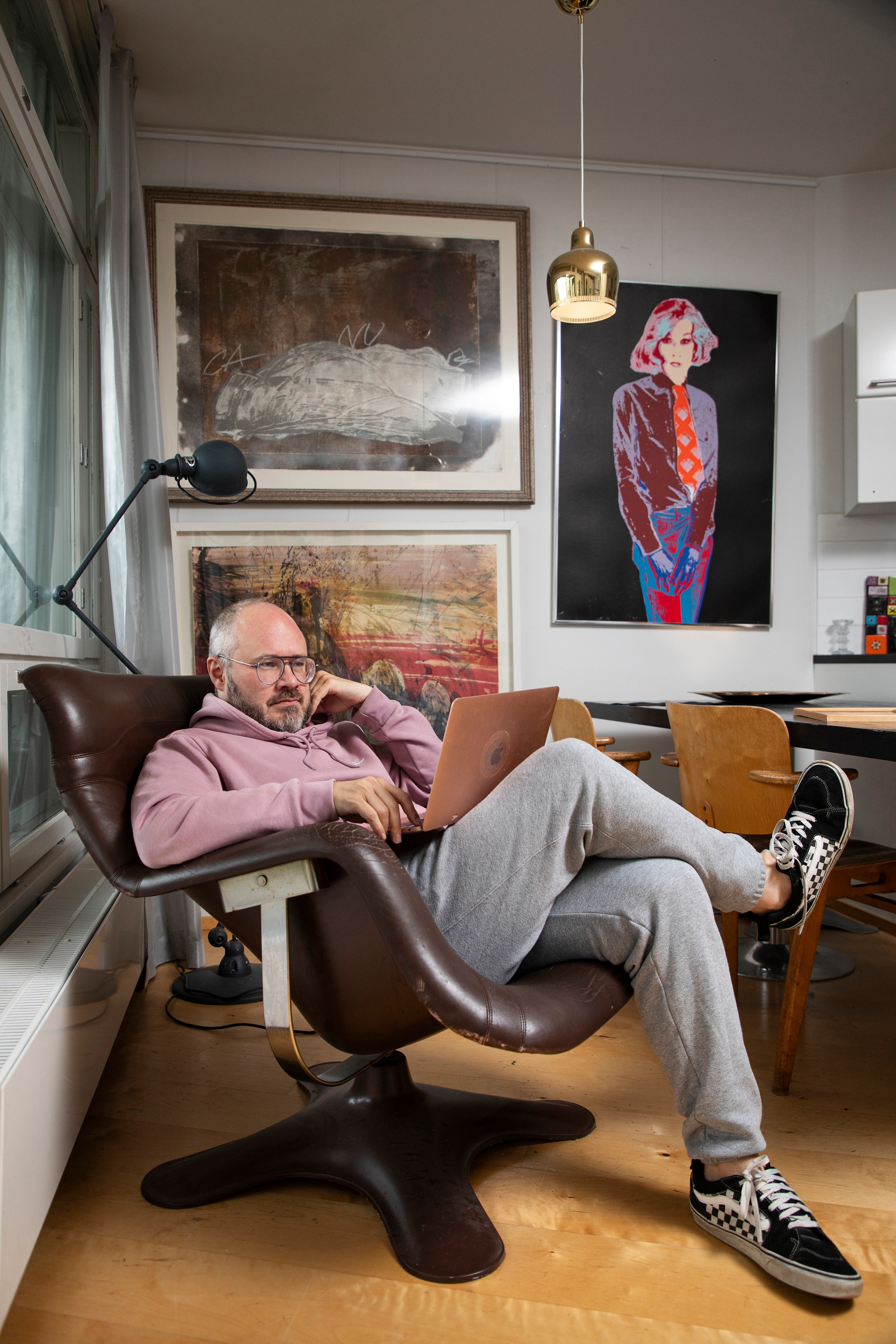 ”Ei tämä koti muuten tämännäköinen olisi. Tässä kohdin maanisuus oli hyvä asia. Sijoitin taiteeseen, jota minulla on nyt niin paljon, että osa töistä on lainassa ystävilläni.”