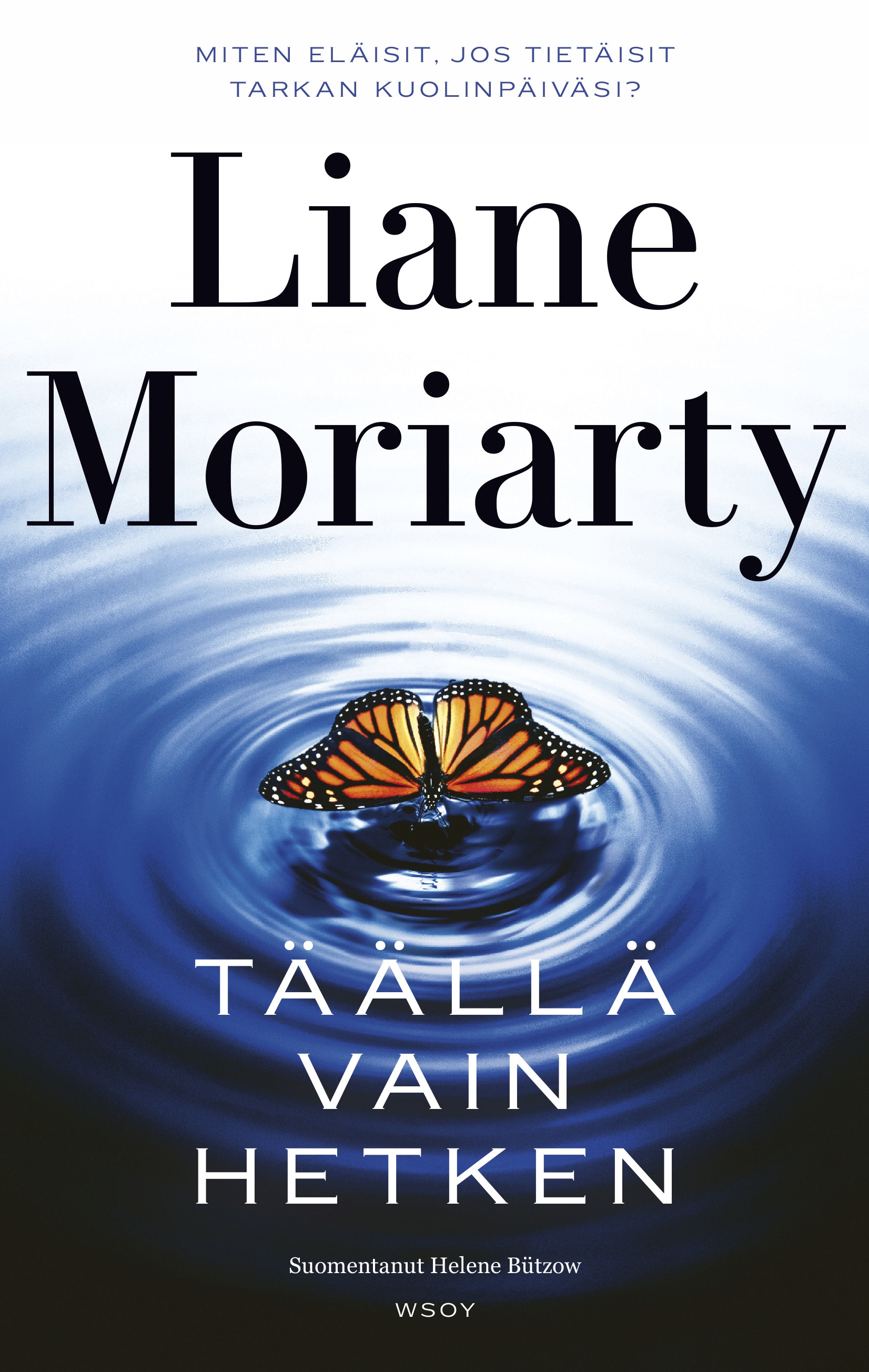 Lentokoneessa vanha nainen alkaa kertoa ihmisille, milloin he kuolevat. Kun yksi ennustus toteutuu, huolestuvat nekin, jotka eivät usko kohtaloon. Liane Moriartyn romaani Täällä vain hetken kertoo surusta ja elämän arvaamattomuudesta. Kirjassa on paljon hahmoja, kokonainen lentokoneellinen, mutta jotenkin Moriarty onnistuu tekemään heistä kaikista oikeita ihmisiä. Kirjan on suomentanut Helena Bûtzov. Mari Paalosalo-Jussinmäki