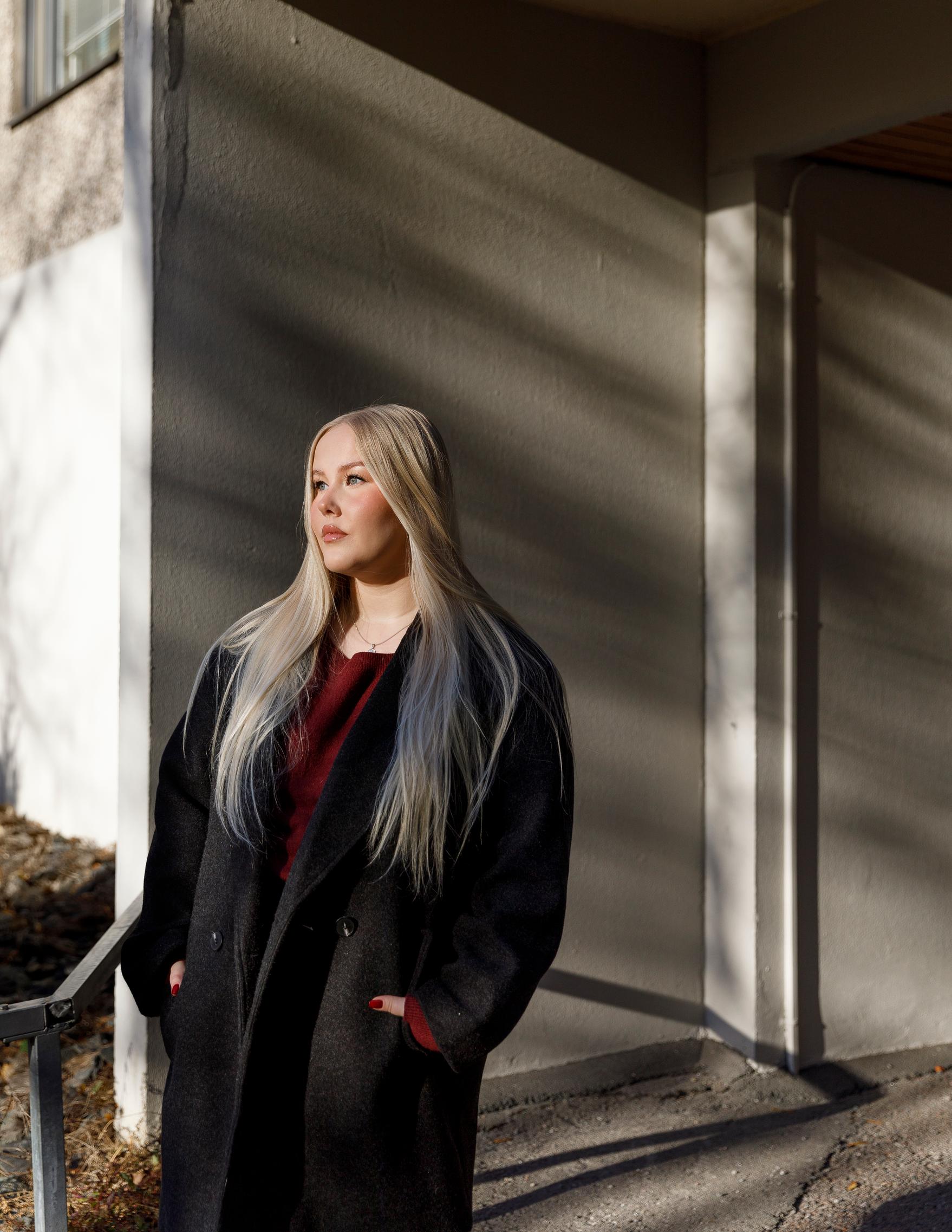 ”Olen aika introvertti ja ennen viihdyin hyvin yksin. Nyt en halua olla yksin hirveästi missään. En halua kävellä pimeällä yksin enkä halua, että ystävänikään liikkuvat yksin pimeällä. Heitän heidät mieluummin kotiin.”