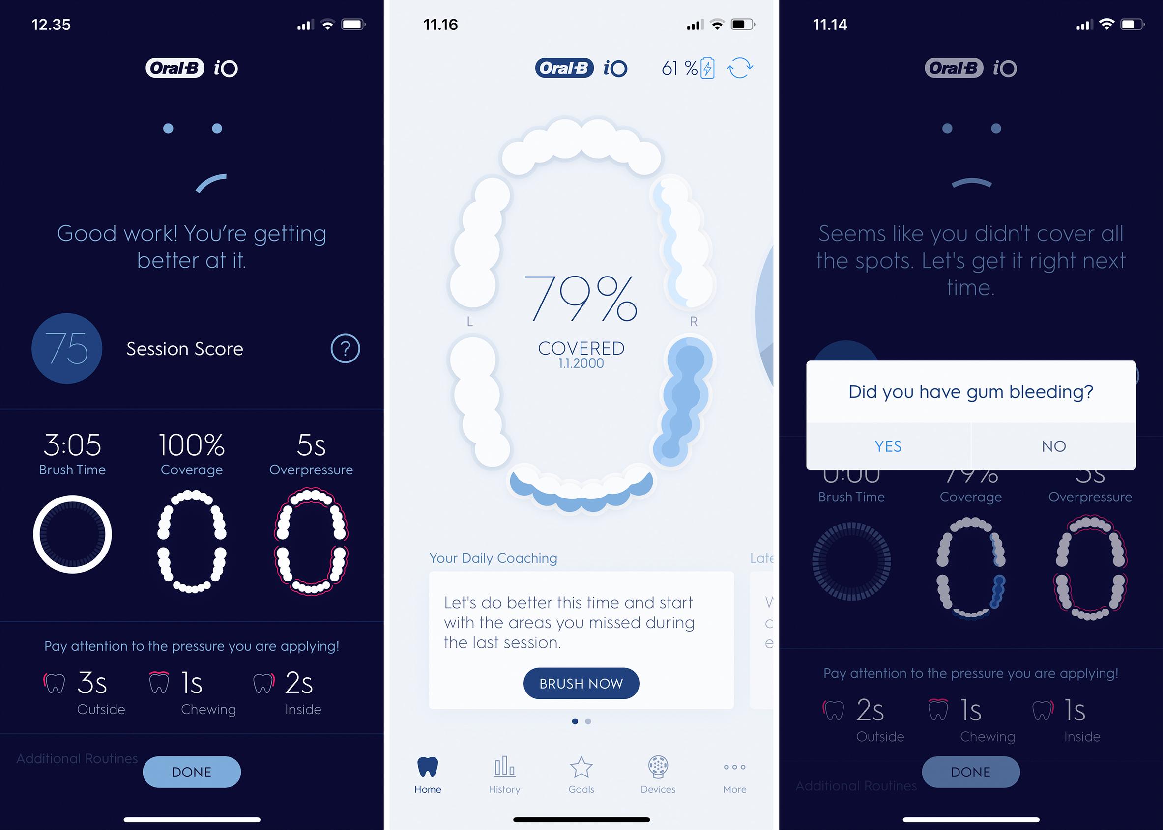Luulin osaavani harjata hampaani, mutta en näköjään osaakaan. Ei muuta kuin paremmin ensi kerralla. Paitsi että parin viikon jälkeen hyytyy into avata puhelisovellus joka kerta, kun hampaansa harjaa.